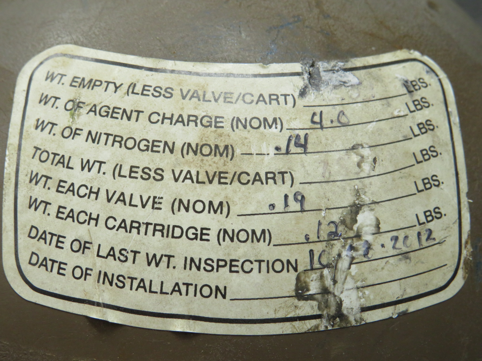 - Date of last WT inspection: 10-08-2012