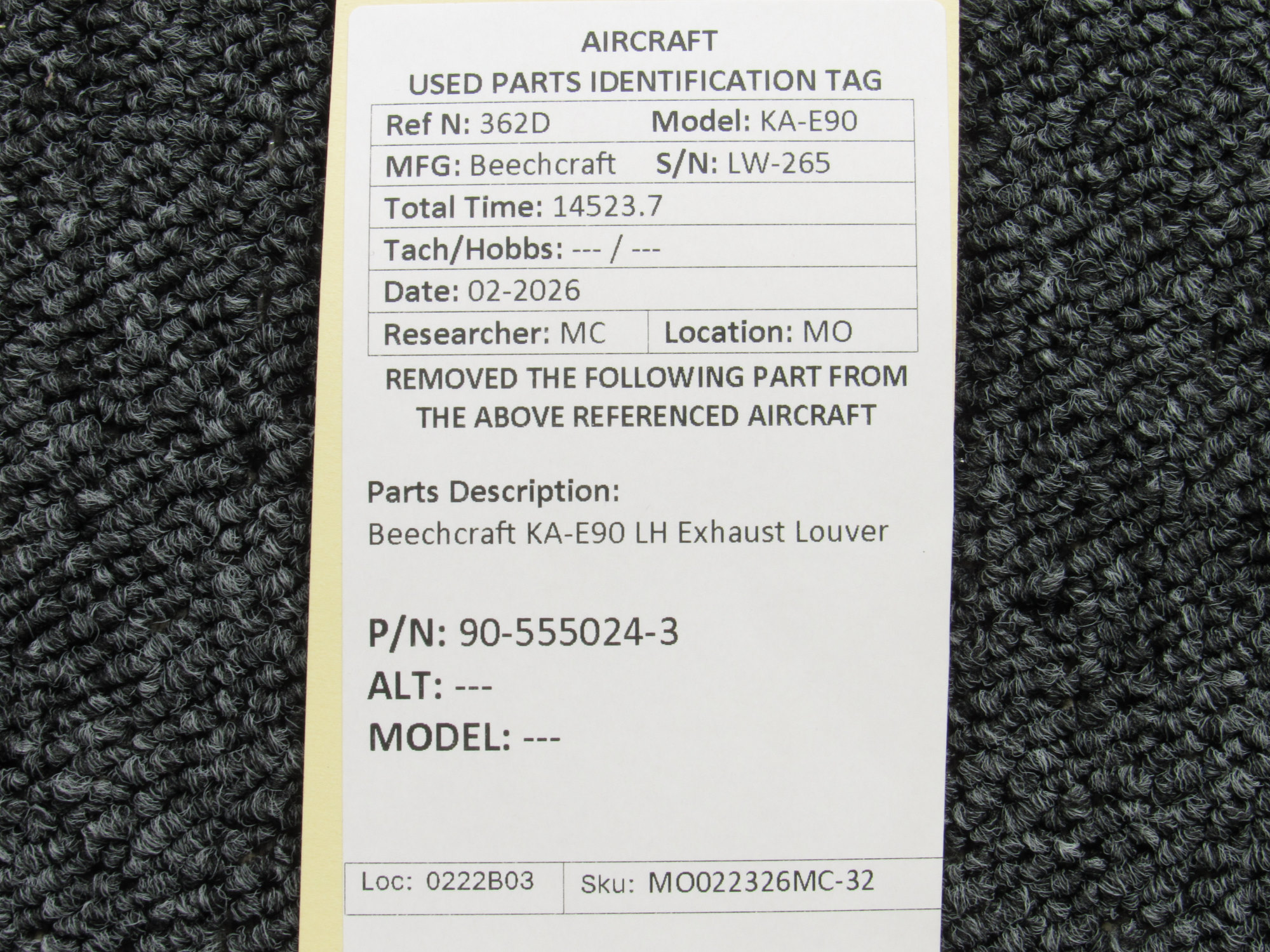 Every part is carefully inspected throughout our process and several times before it goes online. Most items are sold as-removed, just as they came off the aircraft. These parts are not functionally tested. What we do provide is clear photos, full traceability when available, pricing that reflects the as-removed condition, and a no-nonsense 90-day return window.