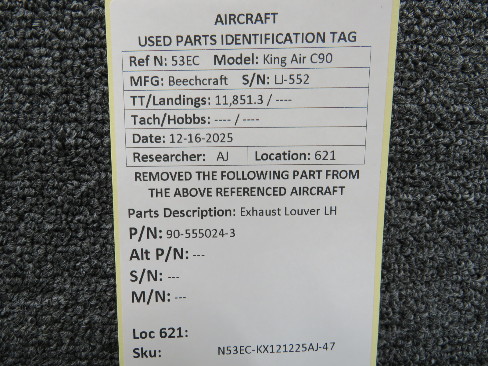 Unless specifically noted, most of our used airplane parts are sold in the condition they were removed, which means you should expect the usual signs of wear and tear.