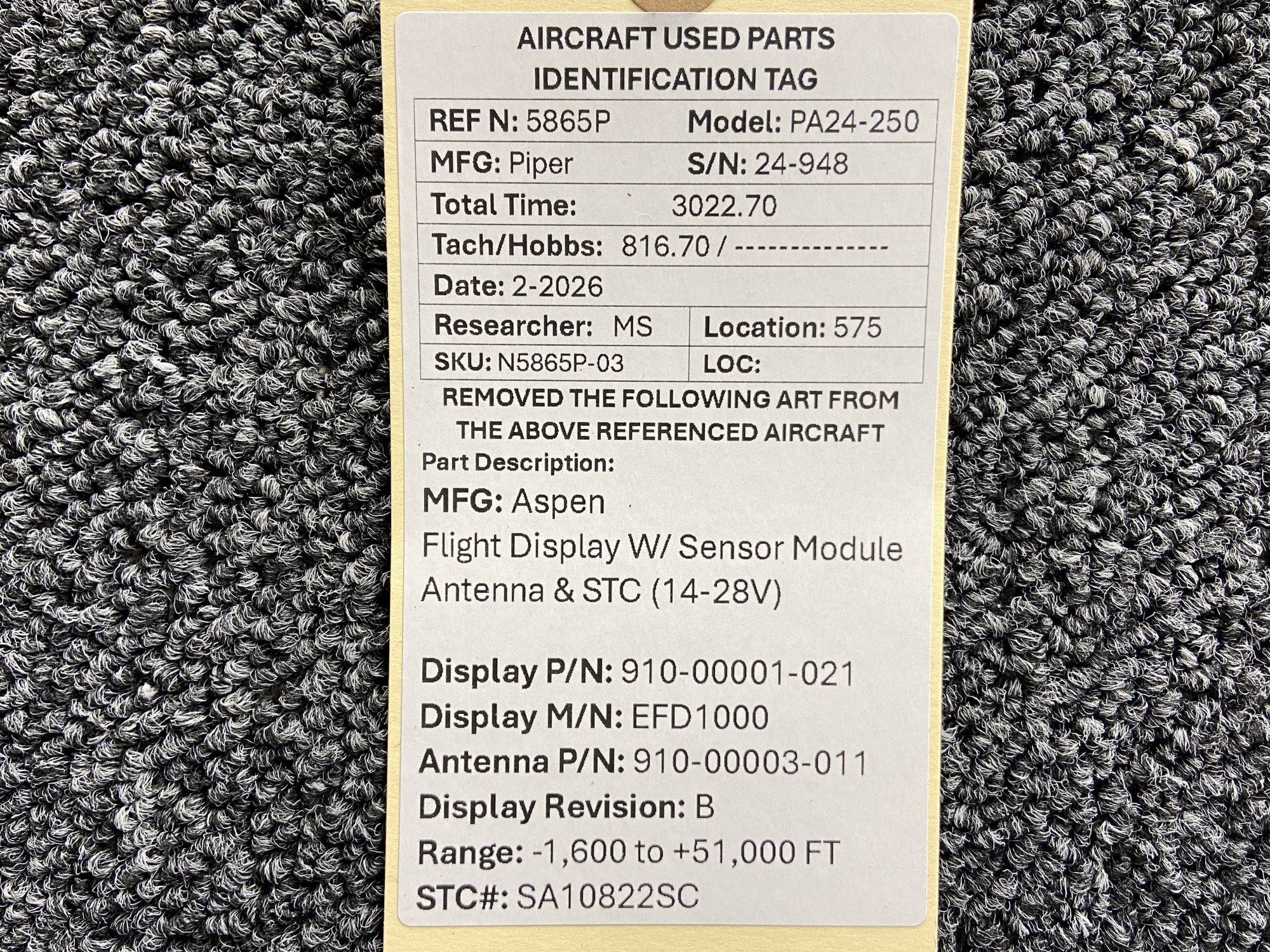 - Comes with sensor module antenna and STC paperwork
