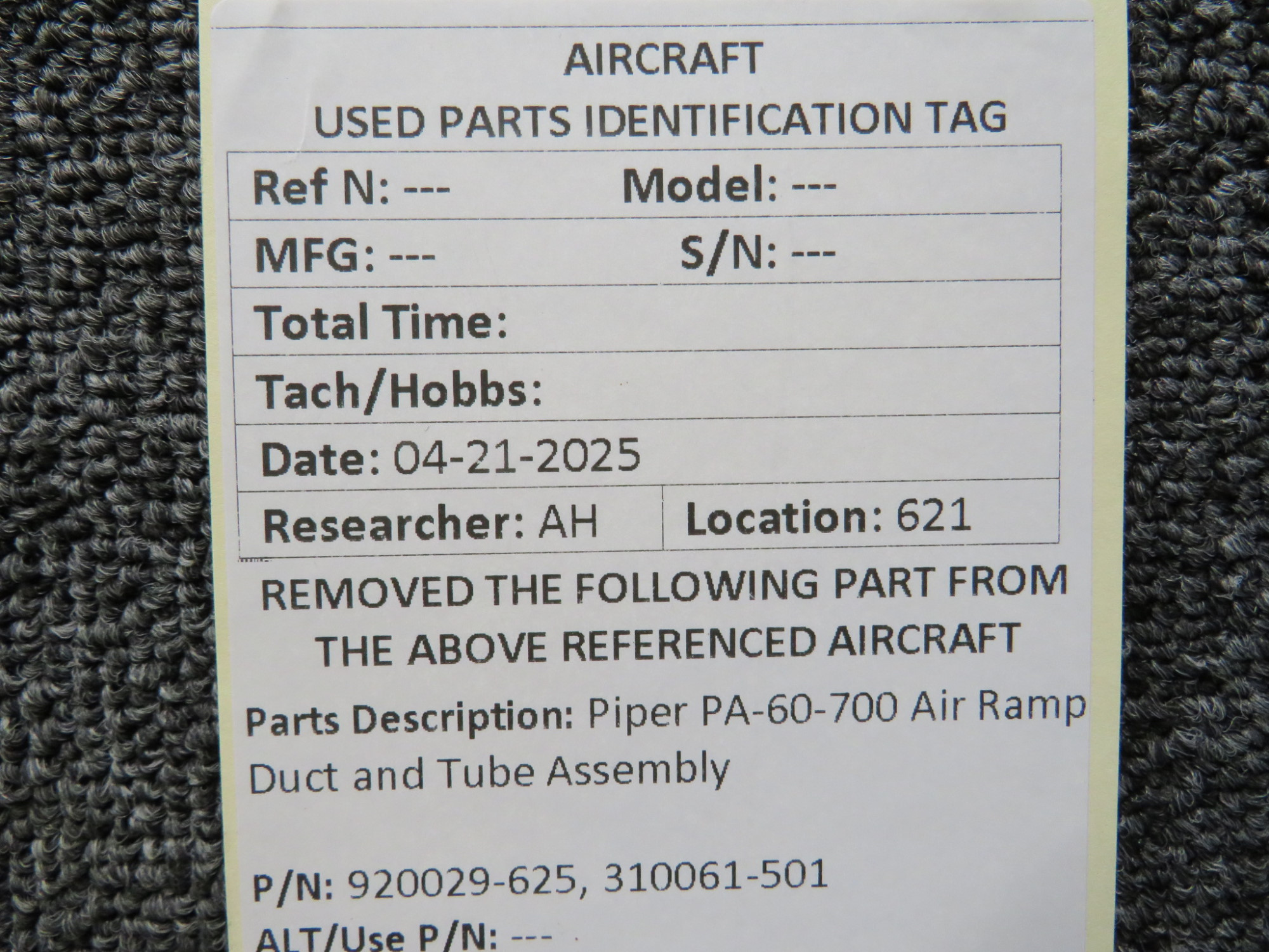 - Duct Part Number: 920029-625