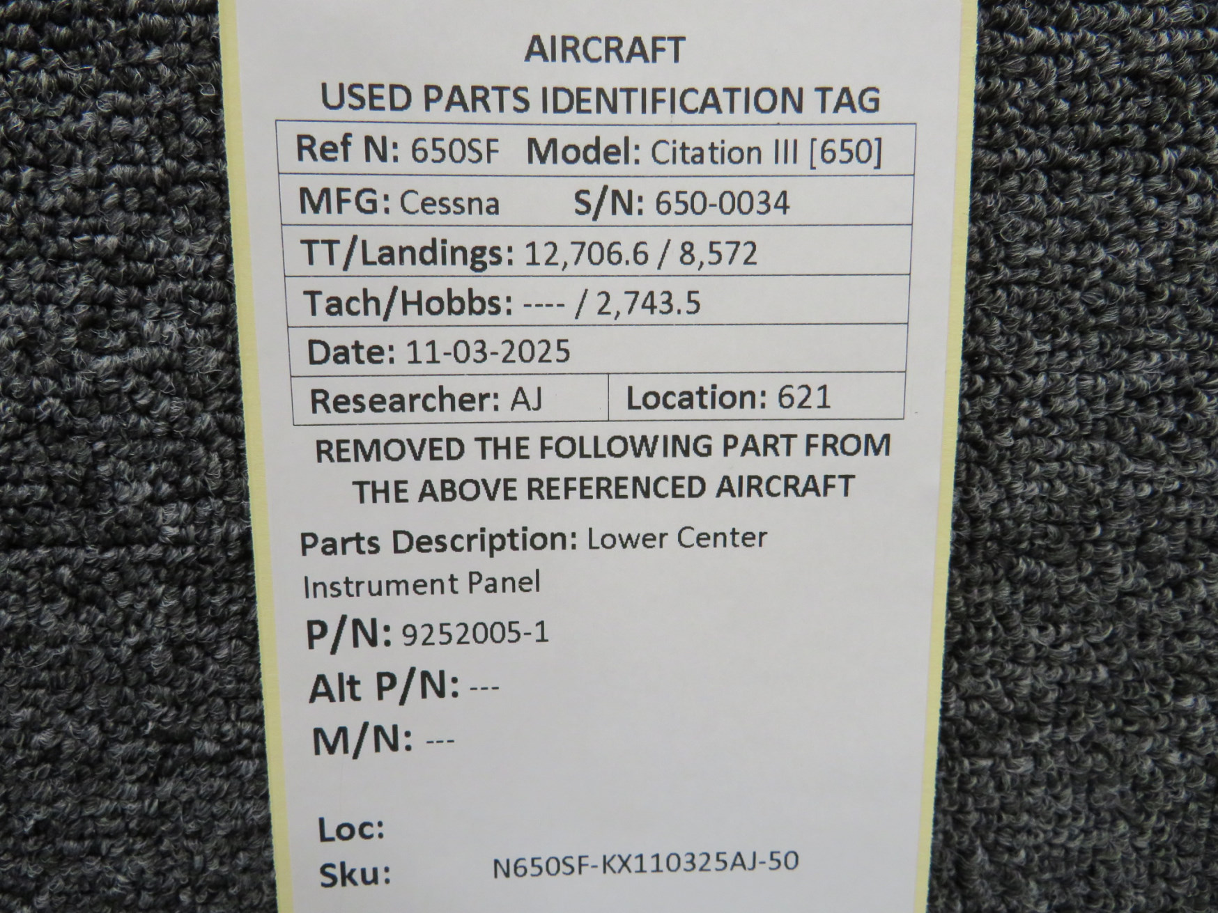 Unless specifically noted, most of our used airplane parts are sold in the condition they were removed, which means you should expect the usual signs of wear and tear.
