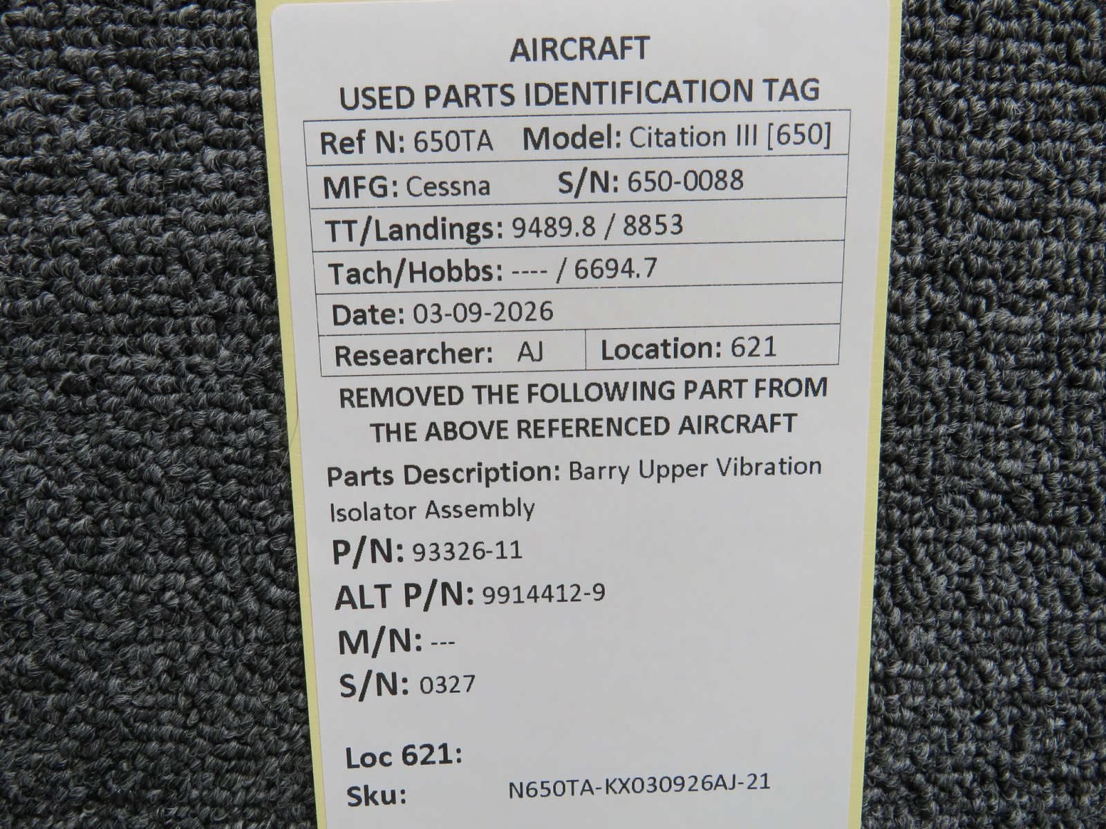 Every part is carefully inspected throughout our process and several times before it goes online. Most items are sold as-removed, just as they came off the aircraft. These parts are not functionally tested. What we do provide is clear photos, full traceability when available, pricing that reflects the as-removed condition, and a no-nonsense 90-day return window.