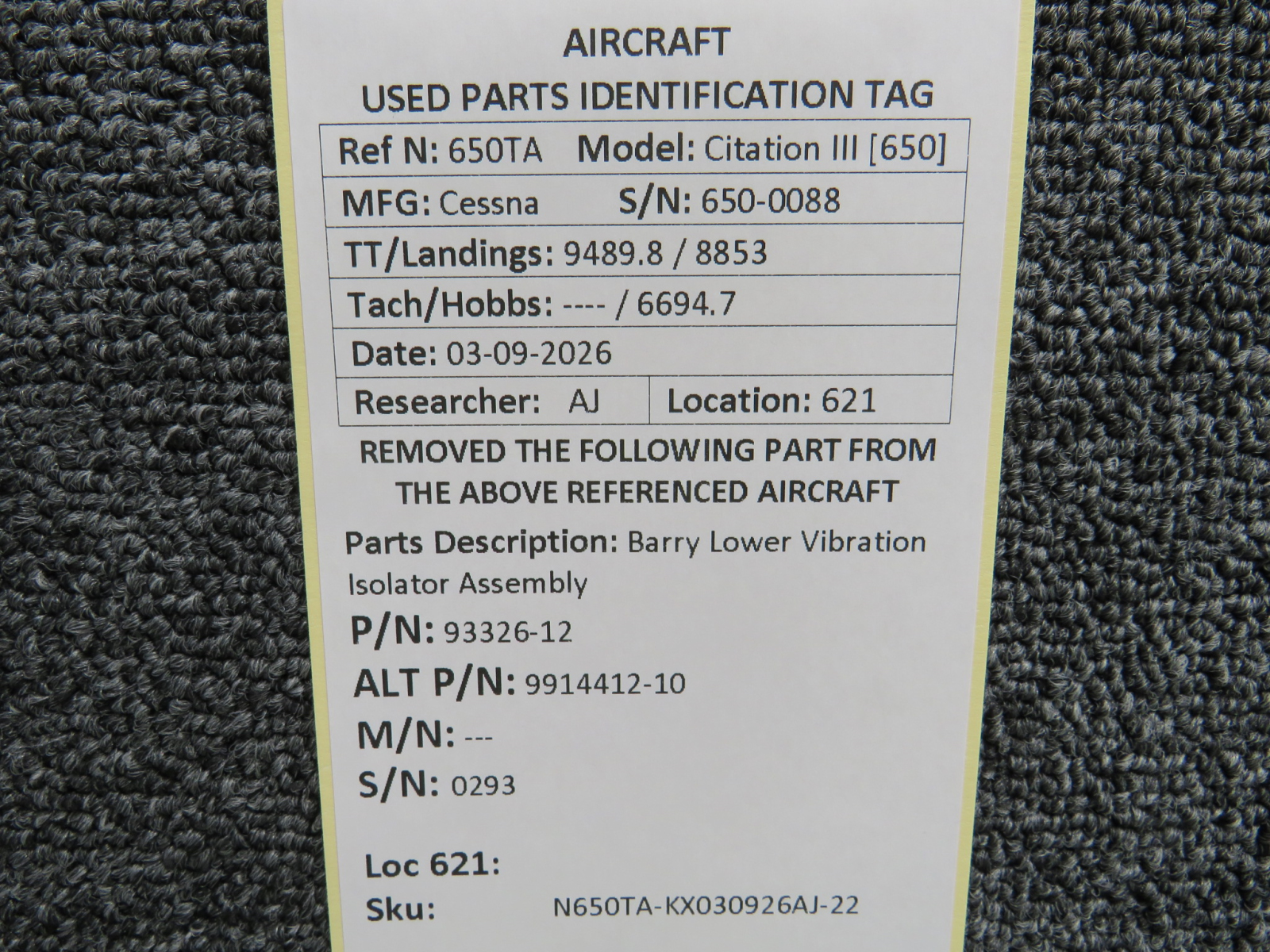 Every part is carefully inspected throughout our process and several times before it goes online. Most items are sold as-removed, just as they came off the aircraft. These parts are not functionally tested. What we do provide is clear photos, full traceability when available, pricing that reflects the as-removed condition, and a no-nonsense 90-day return window.