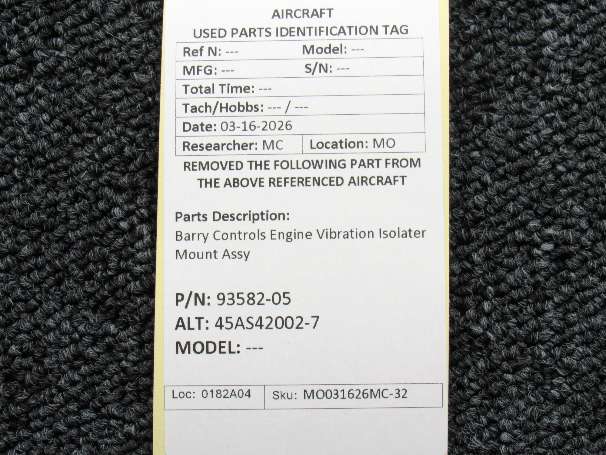 Every part is carefully inspected throughout our process and several times before it goes online. Most items are sold as-removed, just as they came off the aircraft. These parts are not functionally tested. What we do provide is clear photos, full traceability when available, pricing that reflects the as-removed condition, and a no-nonsense 90-day return window.