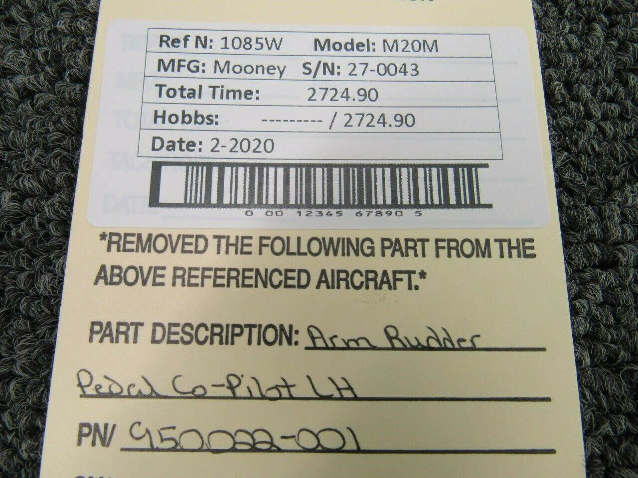 950022-001 Mooney M20M Arm Rudder Pedal Co-Pilot LH