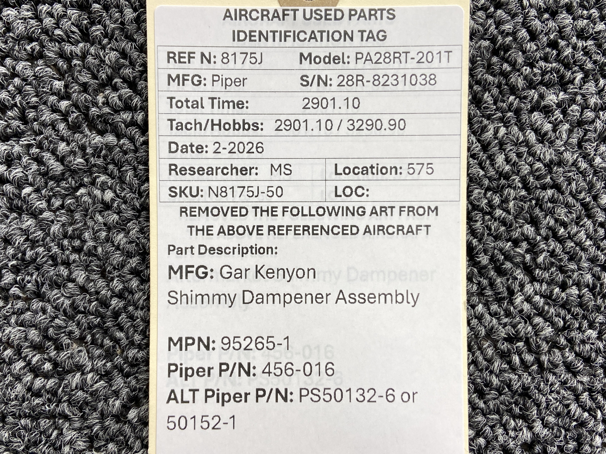 - Piper Part Number: 456-016