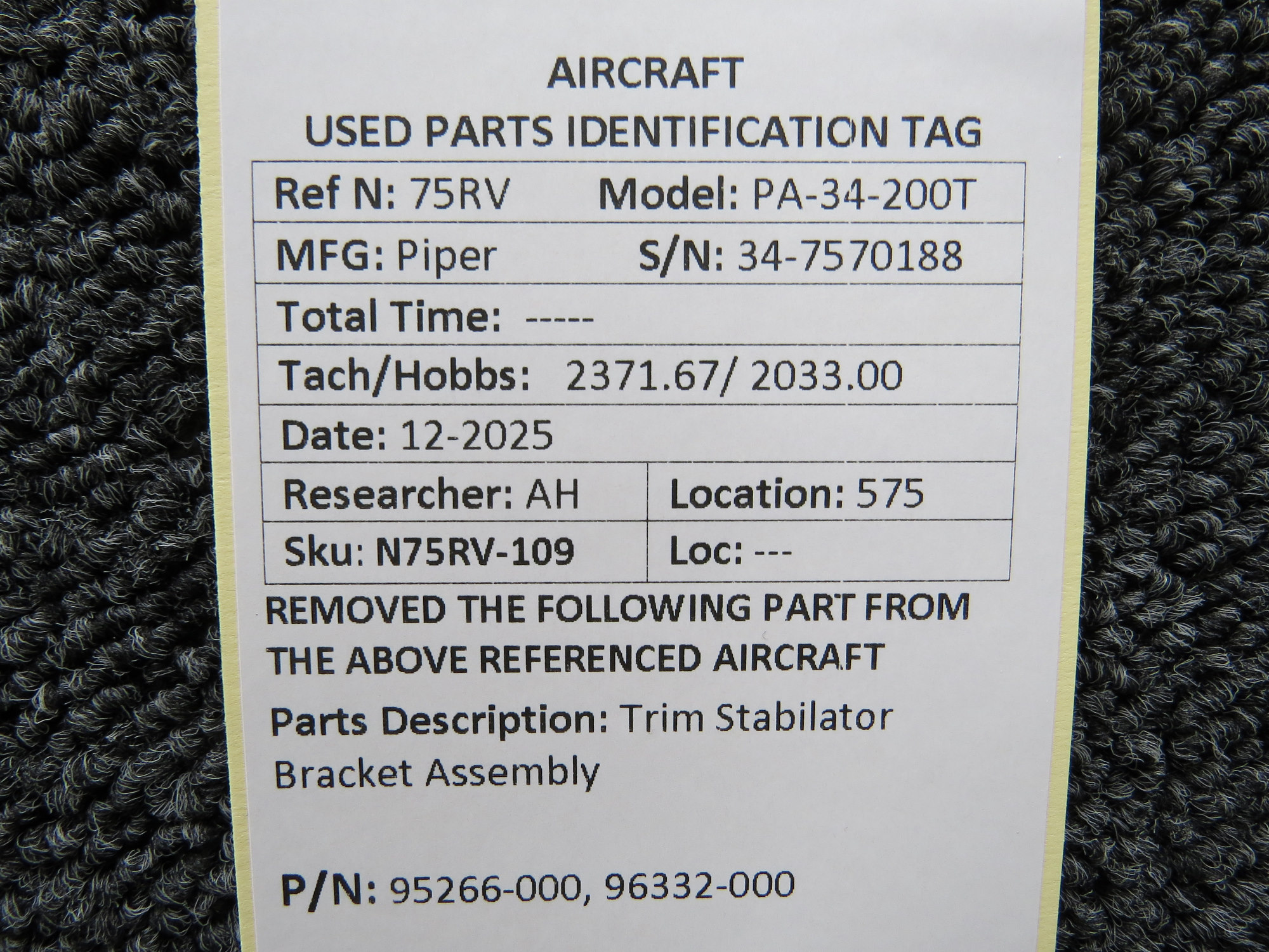 Unless specifically noted, most of our used airplane parts are sold in the condition they were removed, which means you should expect the usual signs of wear and tear.
