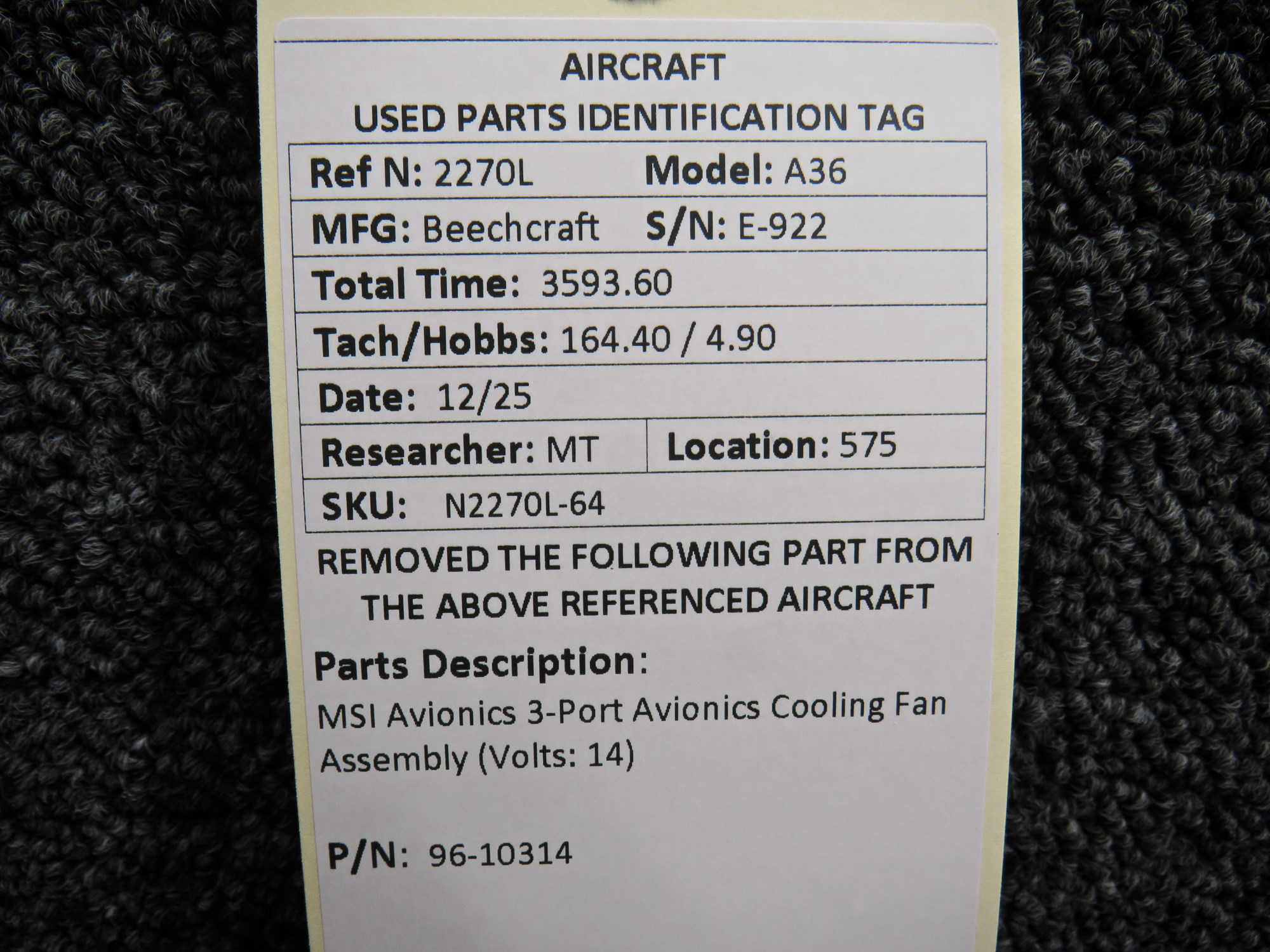 Unless specifically noted, most of our used airplane parts are sold in the condition they were removed, which means you should expect the usual signs of wear and tear.