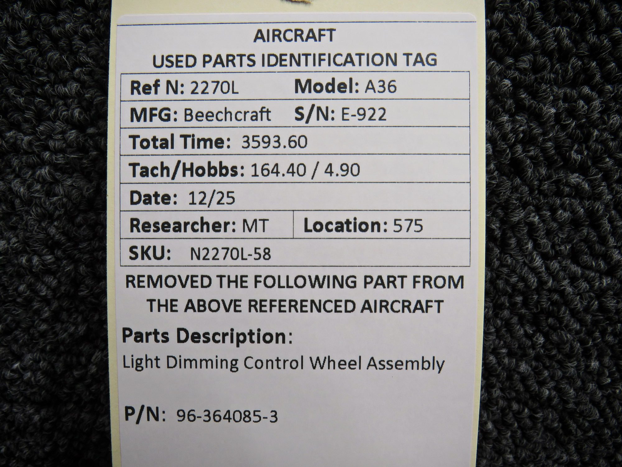 Unless specifically noted, most of our used airplane parts are sold in the condition they were removed, which means you should expect the usual signs of wear and tear.