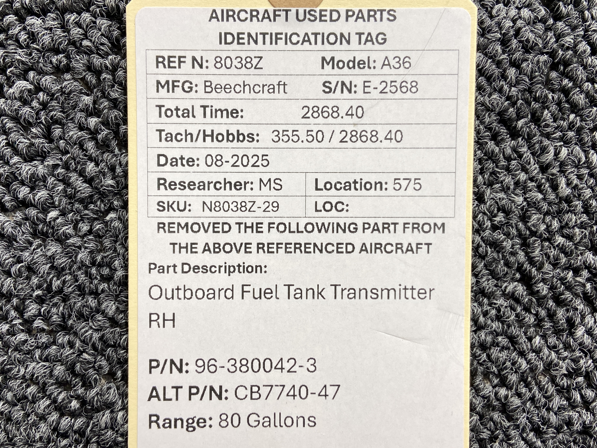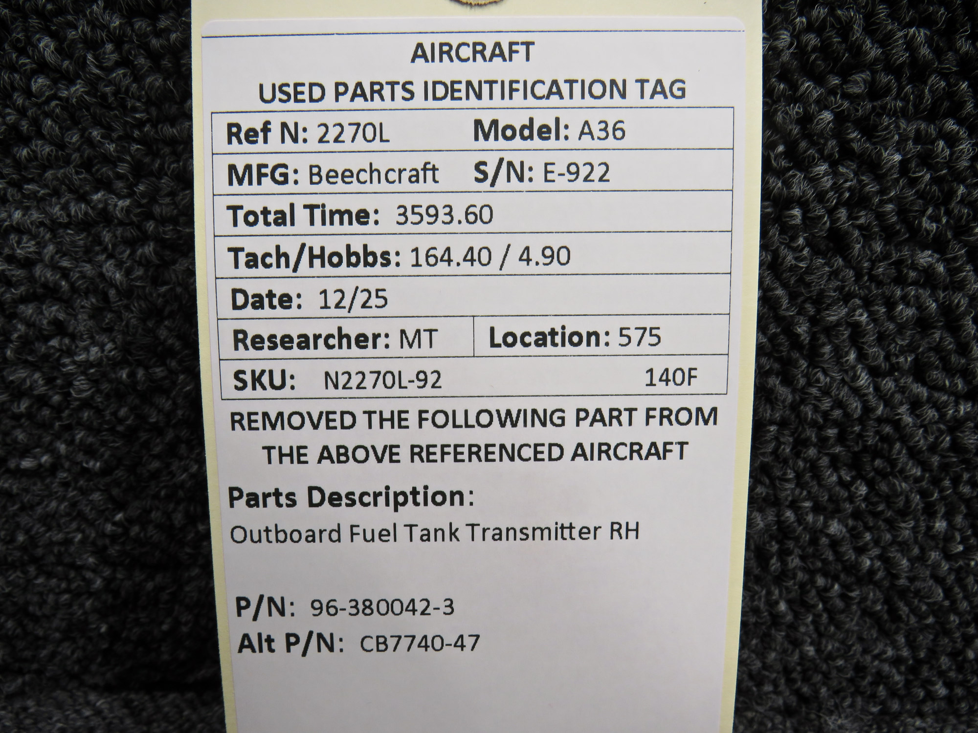 Unless specifically noted, most of our used airplane parts are sold in the condition they were removed, which means you should expect the usual signs of wear and tear.
