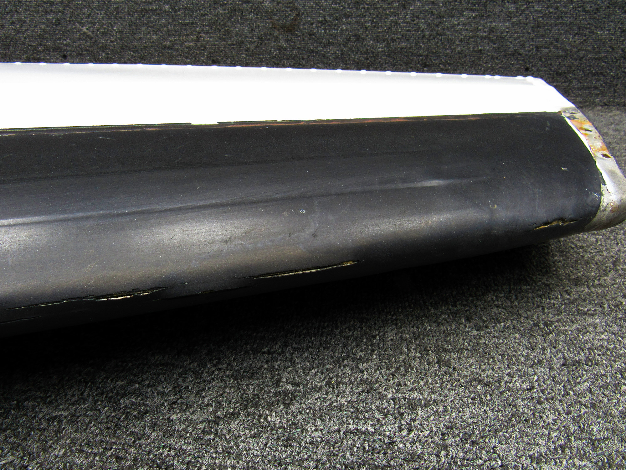 - Lower Leading Edge has Cracked Impact Dent