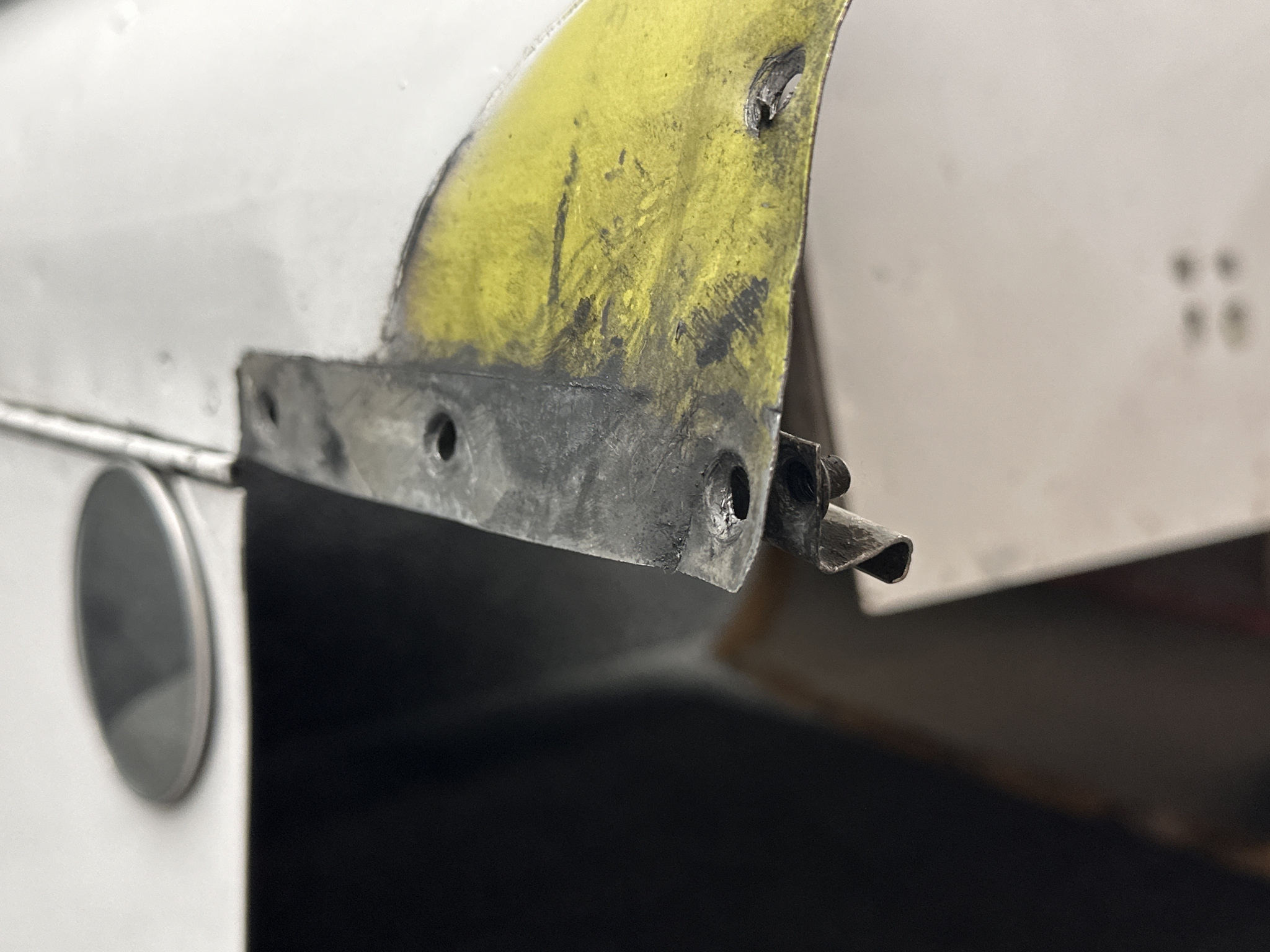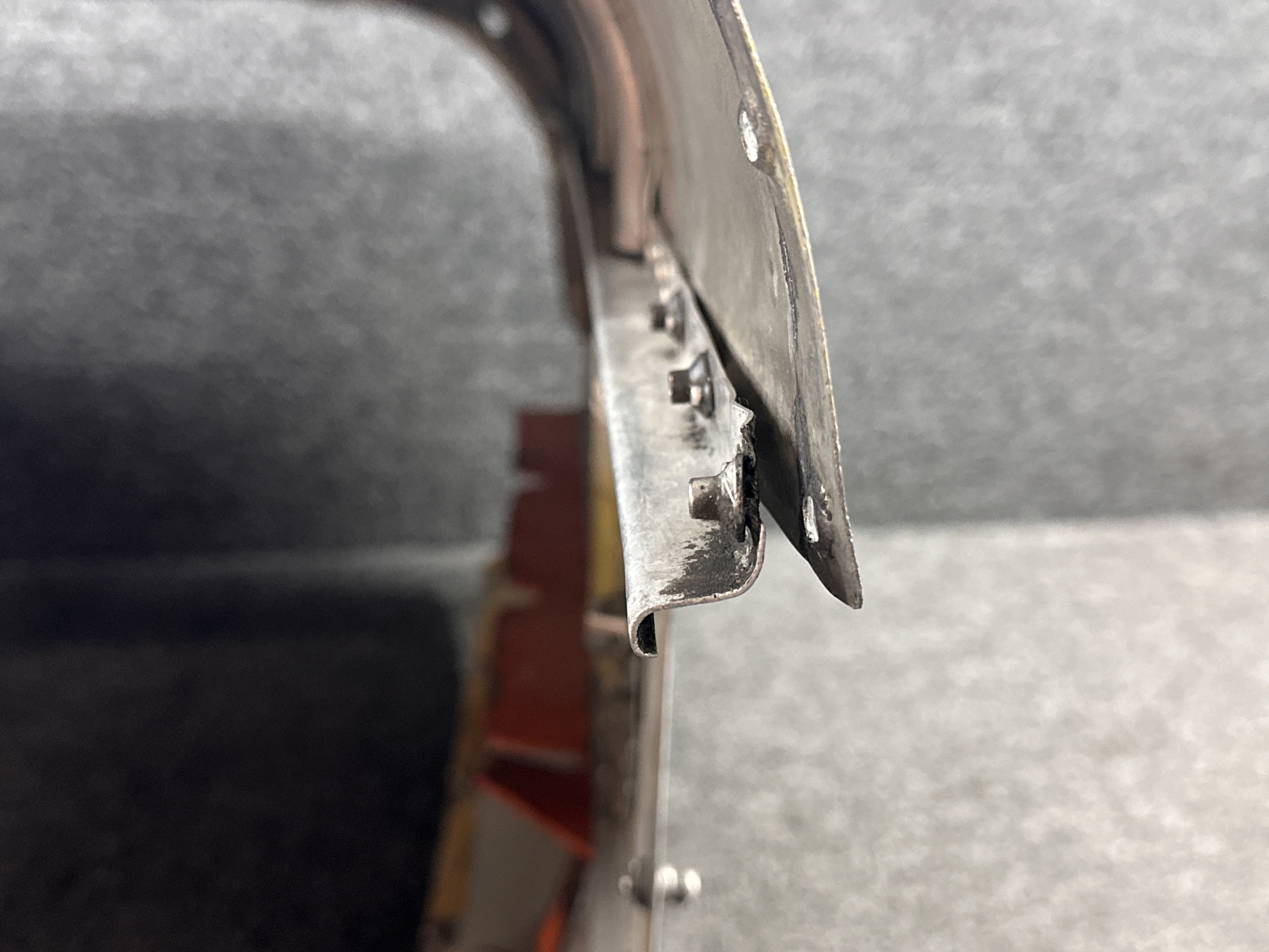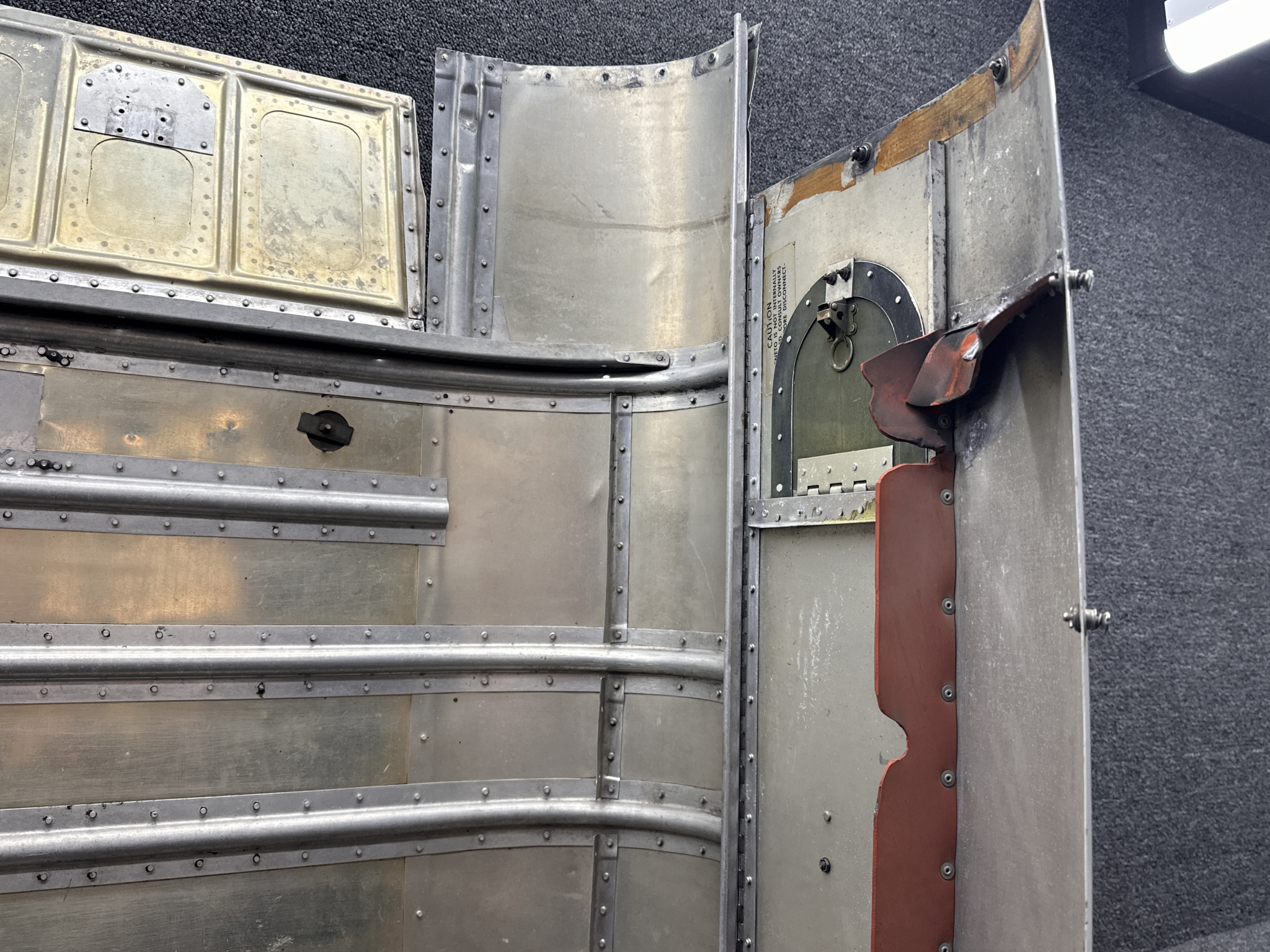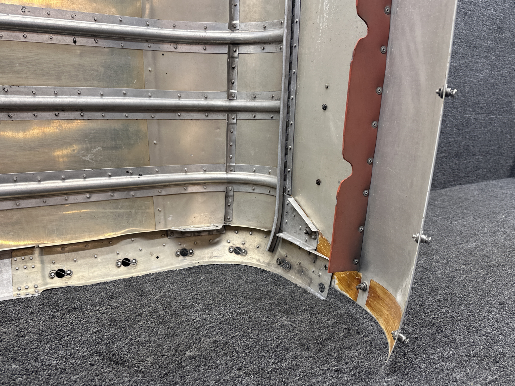 - Damage all around, heavy patching, couple of small dents on surface, and mounting separating from cowling