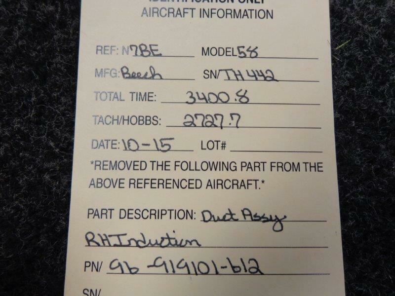 96-919101-612 Beech 58 Duct Assy RH Induction