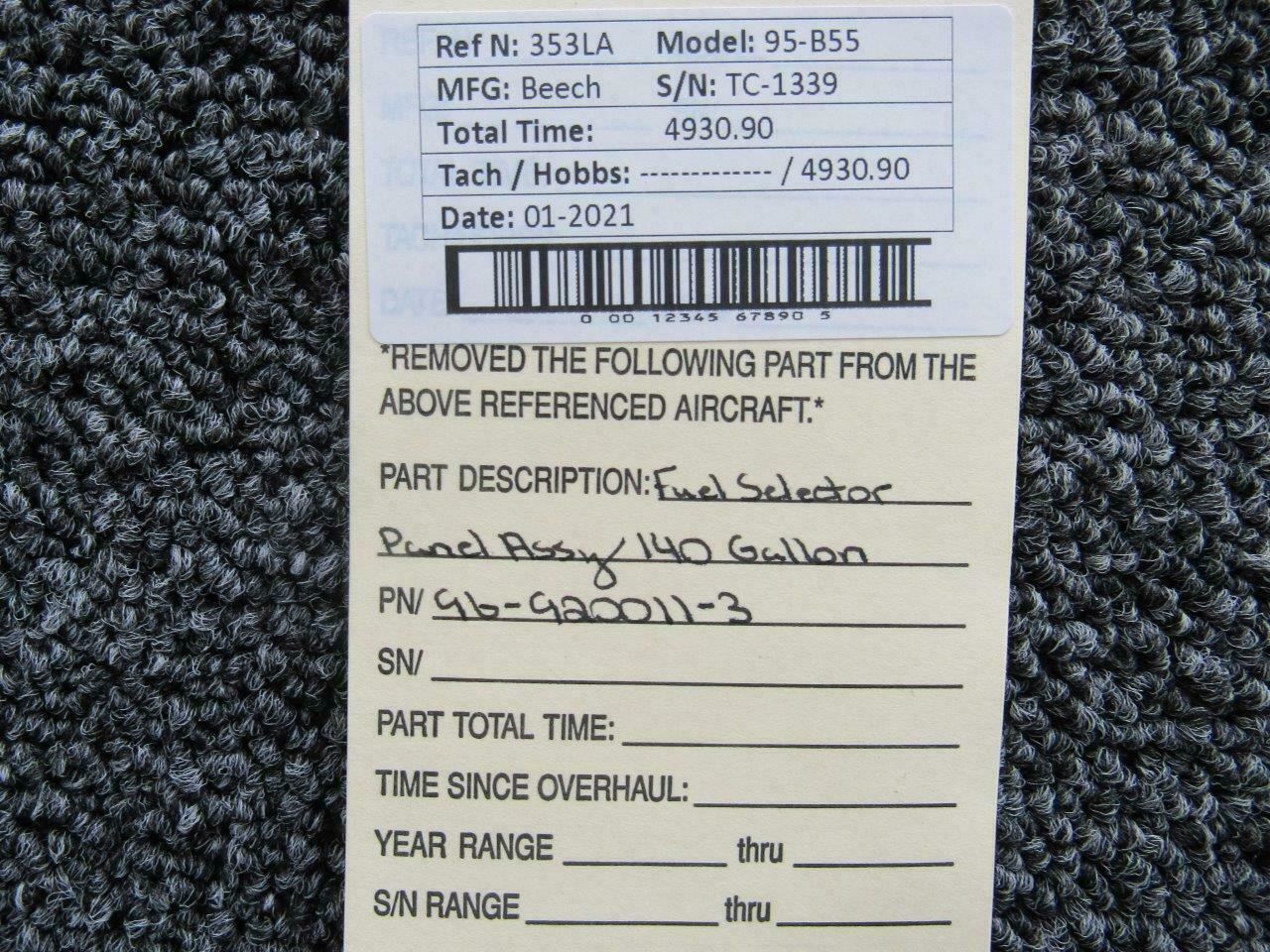96-920011-3 Beech 95-B55 Fuel Selector Panel Assy (140 Gallon)