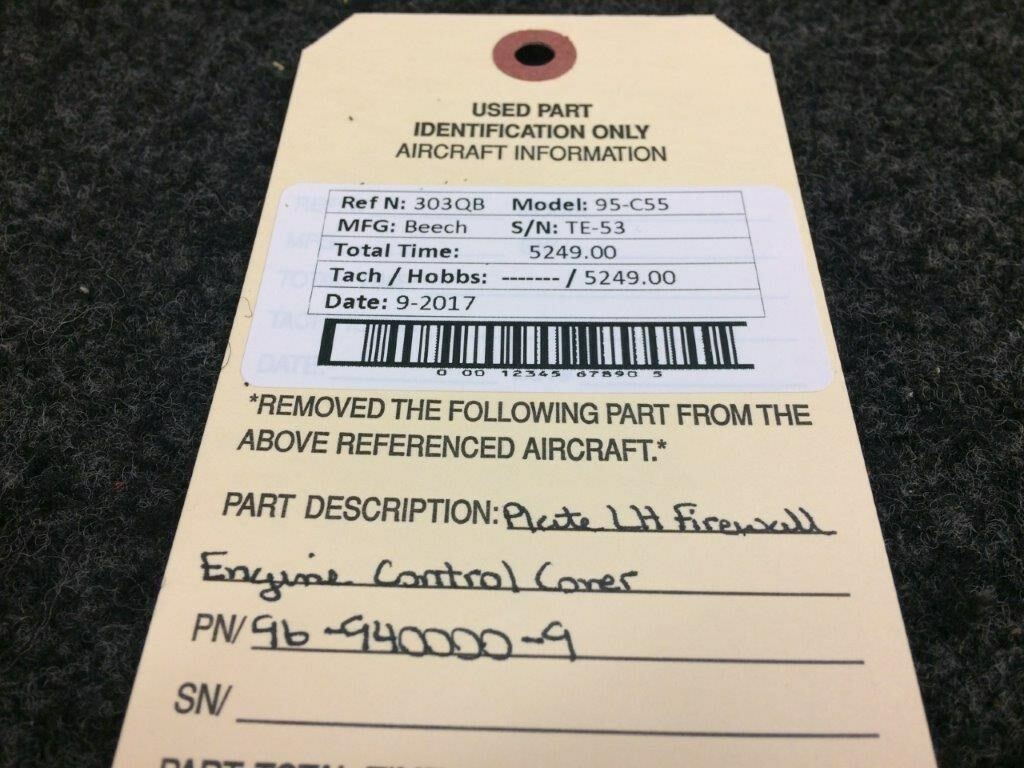 96-940000-9 Beech 95-C55 Plate LH Firewall Engine Control Cover