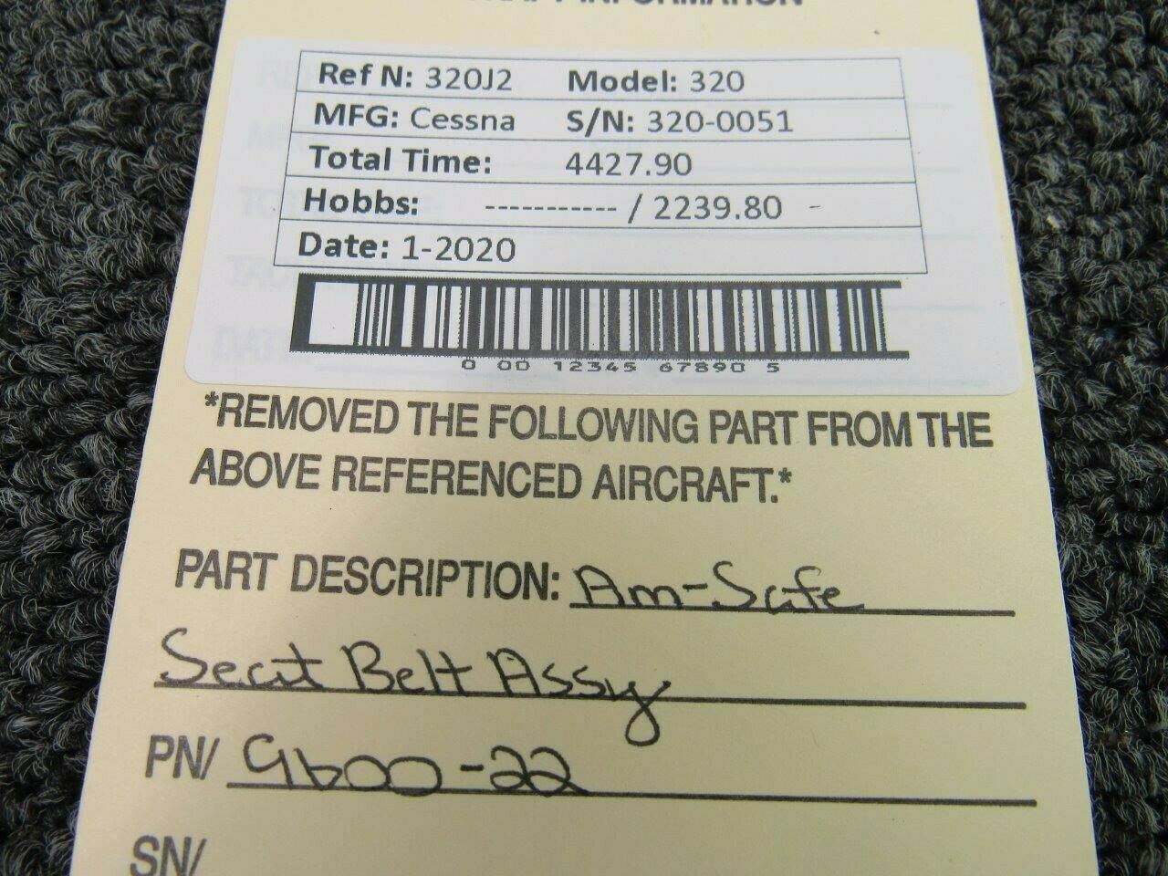 9600-22 Cessna 320 Am-Safe Seat Belt Assy Tan