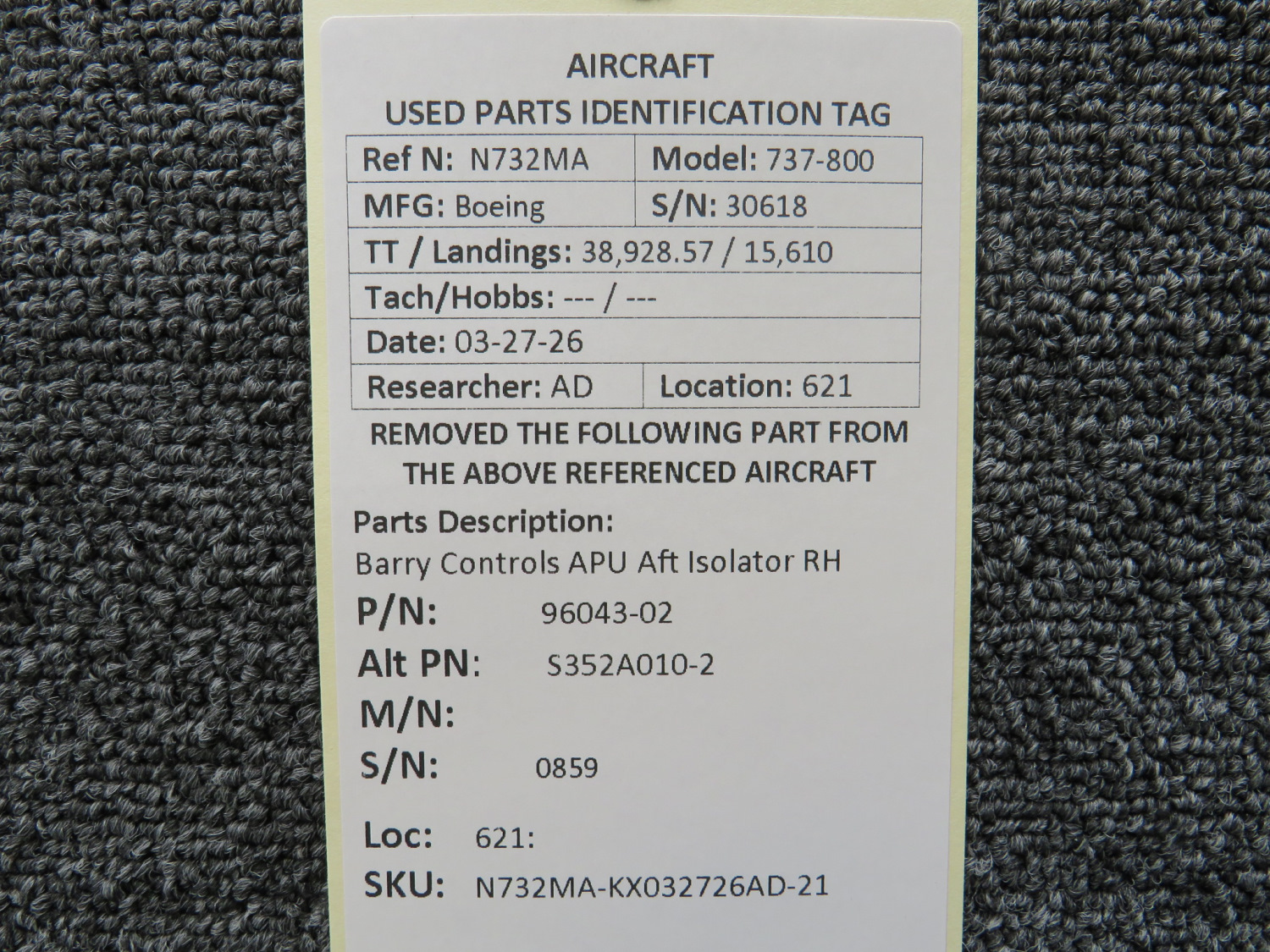 Every part is carefully inspected throughout our process and several times before it goes online. Most items are sold as-removed, just as they came off the aircraft. These parts are not functionally tested. What we do provide is clear photos, full traceability when available, pricing that reflects the as-removed condition, and a no-nonsense 90-day return window.