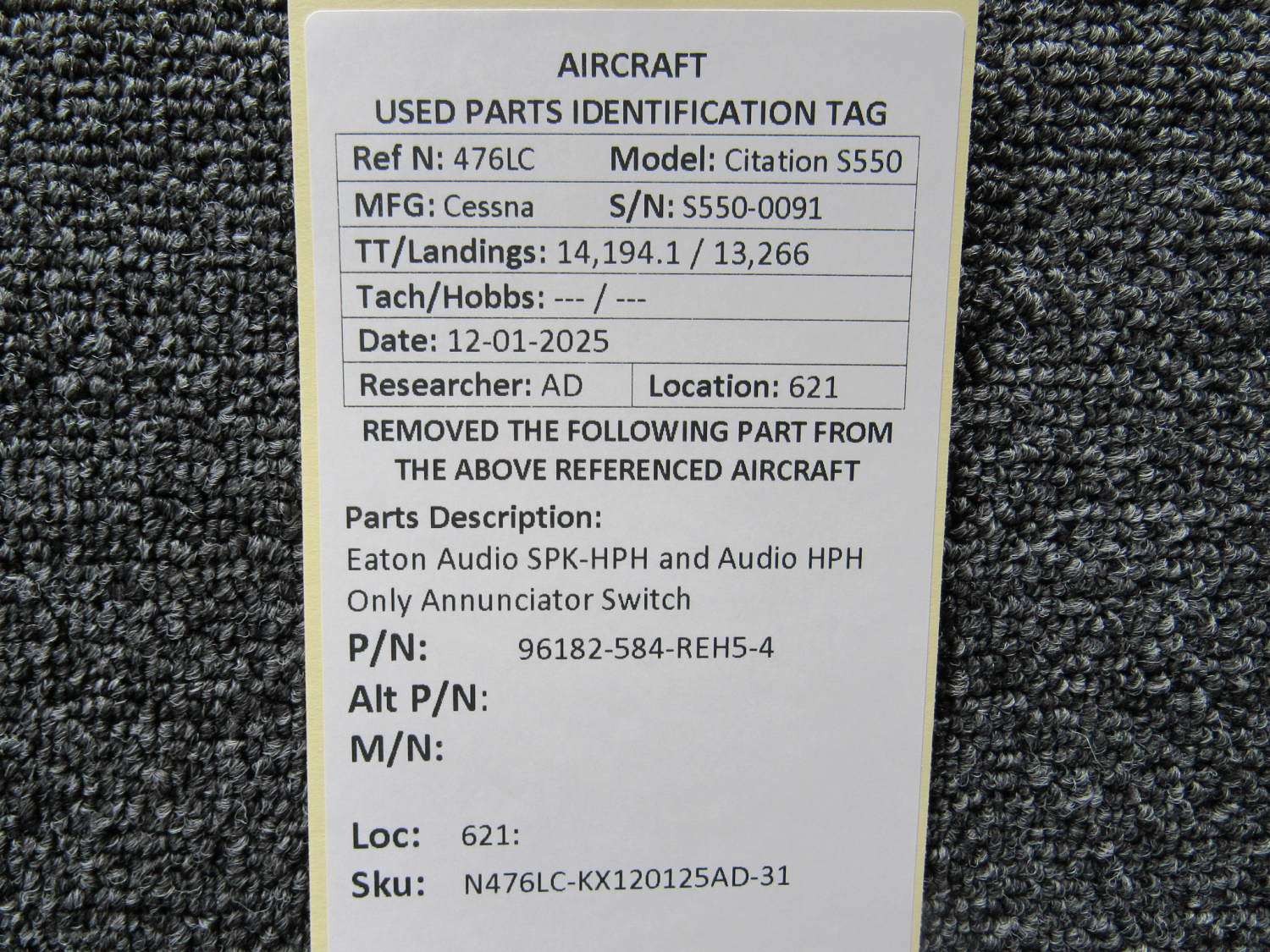 Unless specifically noted, most of our used airplane parts are sold in the condition they were removed, which means you should expect the usual signs of wear and tear.