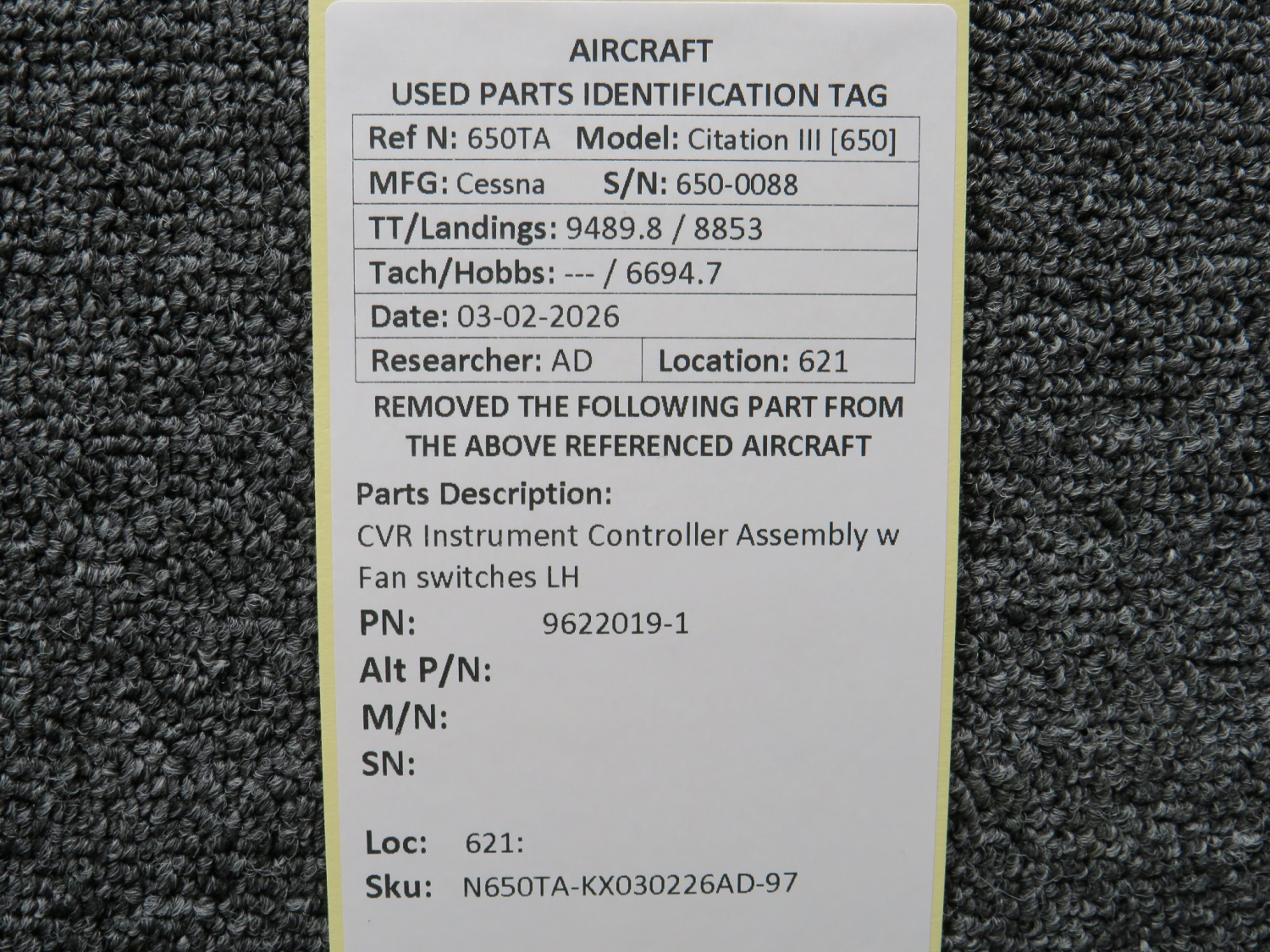 Every part is carefully inspected throughout our process and several times before it goes online. Most items are sold as-removed, just as they came off the aircraft. These parts are not functionally tested. What we do provide is clear photos, full traceability when available, pricing that reflects the as-removed condition, and a no-nonsense 90-day return window.