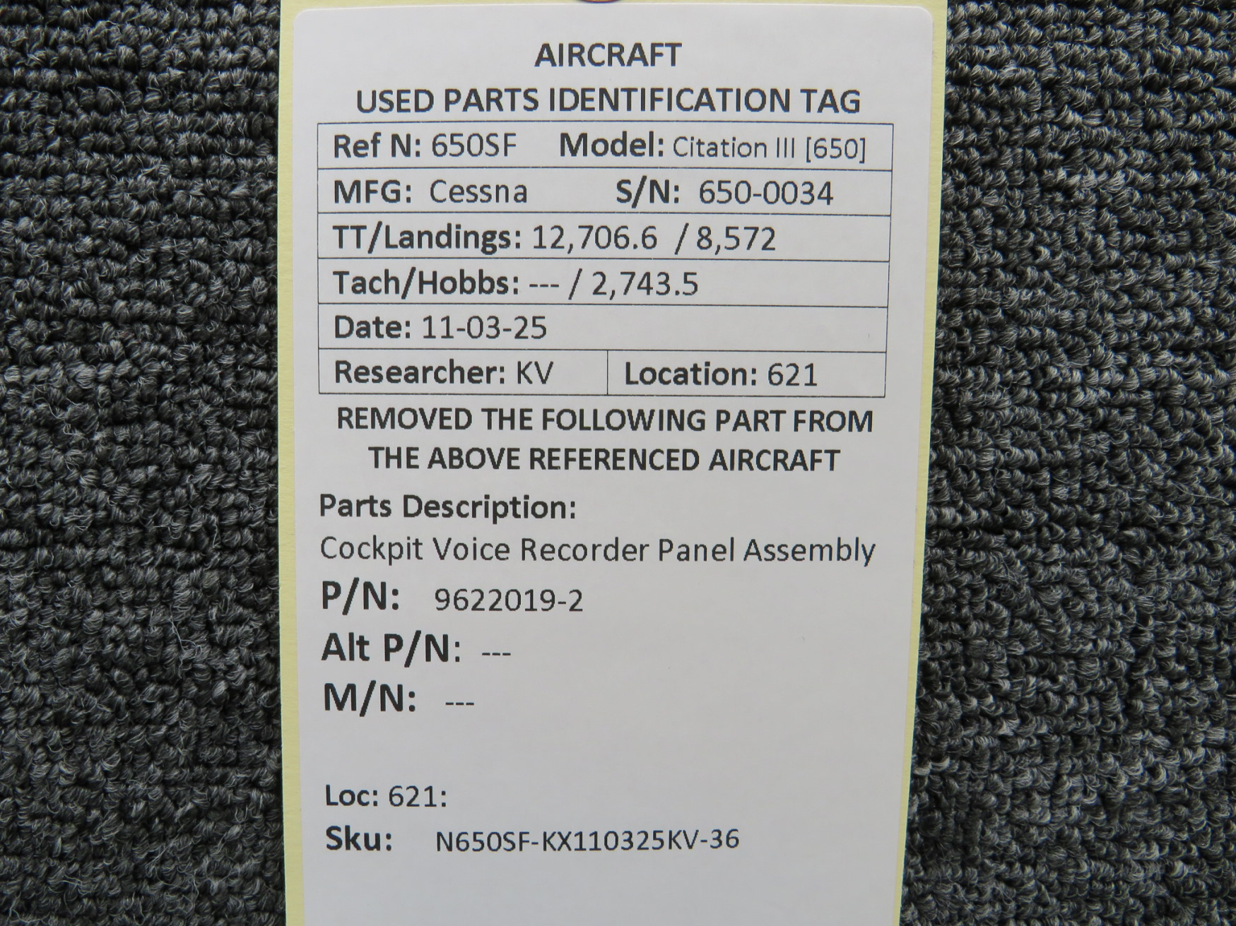 Unless specifically noted, most of our used airplane parts are sold in the condition they were removed, which means you should expect the usual signs of wear and tear.