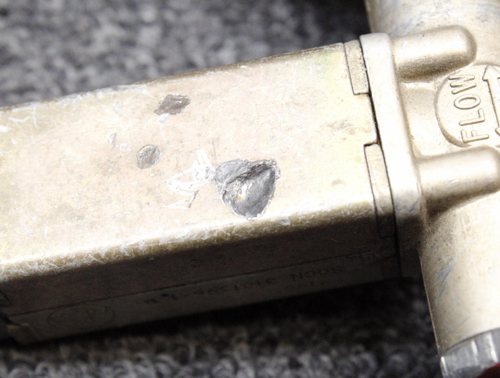 - The solenoid valve has a dent/scrape