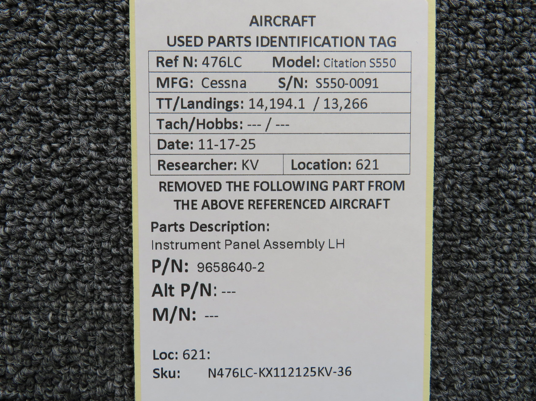 Unless specifically noted, most of our used airplane parts are sold in the condition they were removed, which means you should expect the usual signs of wear and tear.