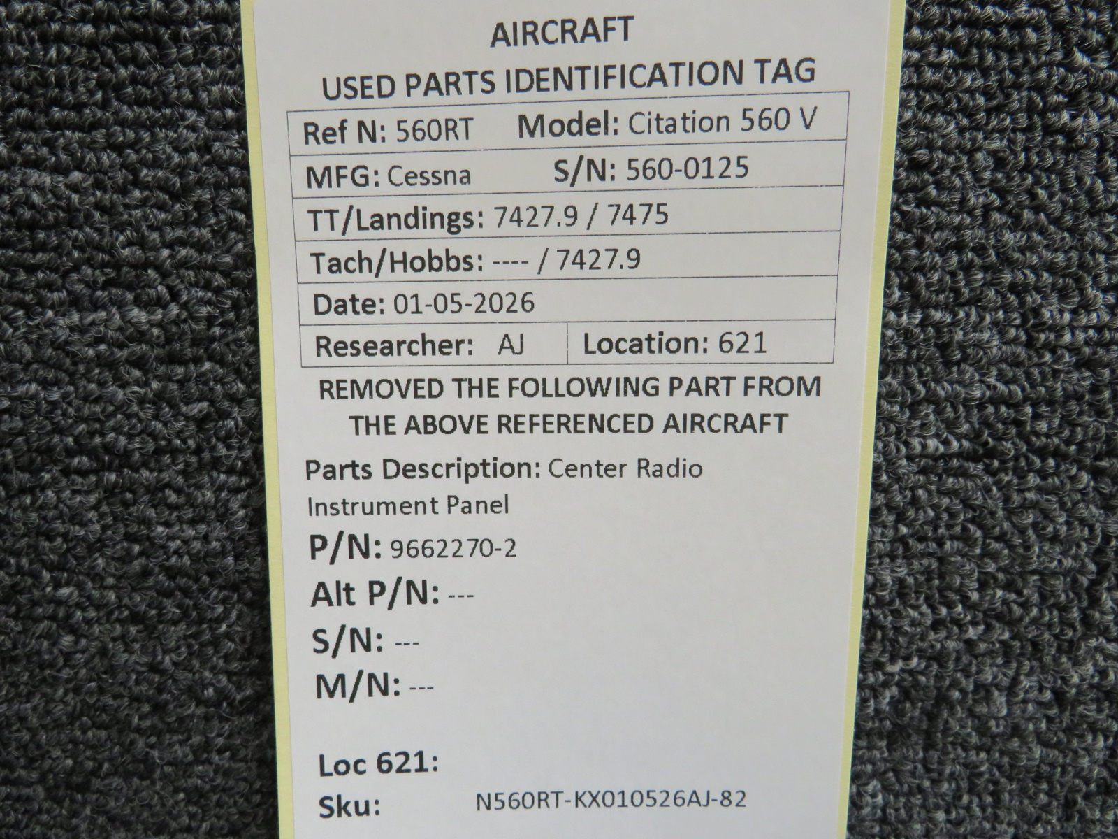 Unless specifically noted, most of our used airplane parts are sold in the condition they were removed, which means you should expect the usual signs of wear and tear.