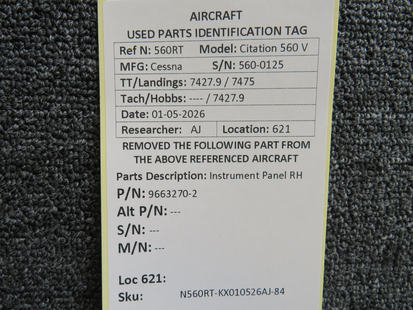 - N560RT-KX010526AJ-84JL - Panel is in great physical condition, different holes