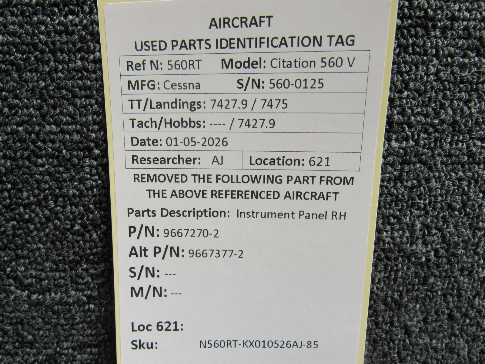 Unless specifically noted, most of our used airplane parts are sold in the condition they were removed, which means you should expect the usual signs of wear and tear.