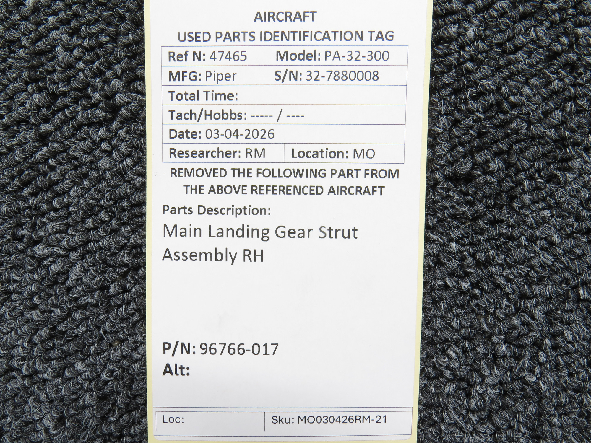 Unless specifically noted, most of our used airplane parts are sold in the condition they were removed, which means you should expect the usual signs of wear and tear.