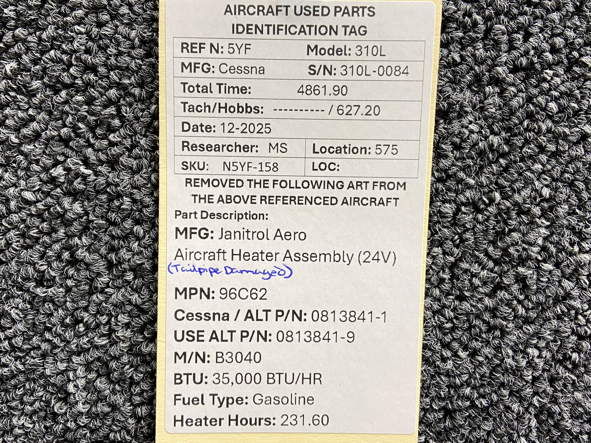 Unless specifically noted, most of our used airplane parts are sold in the condition they were removed, which means you should expect the usual signs of wear and tear.