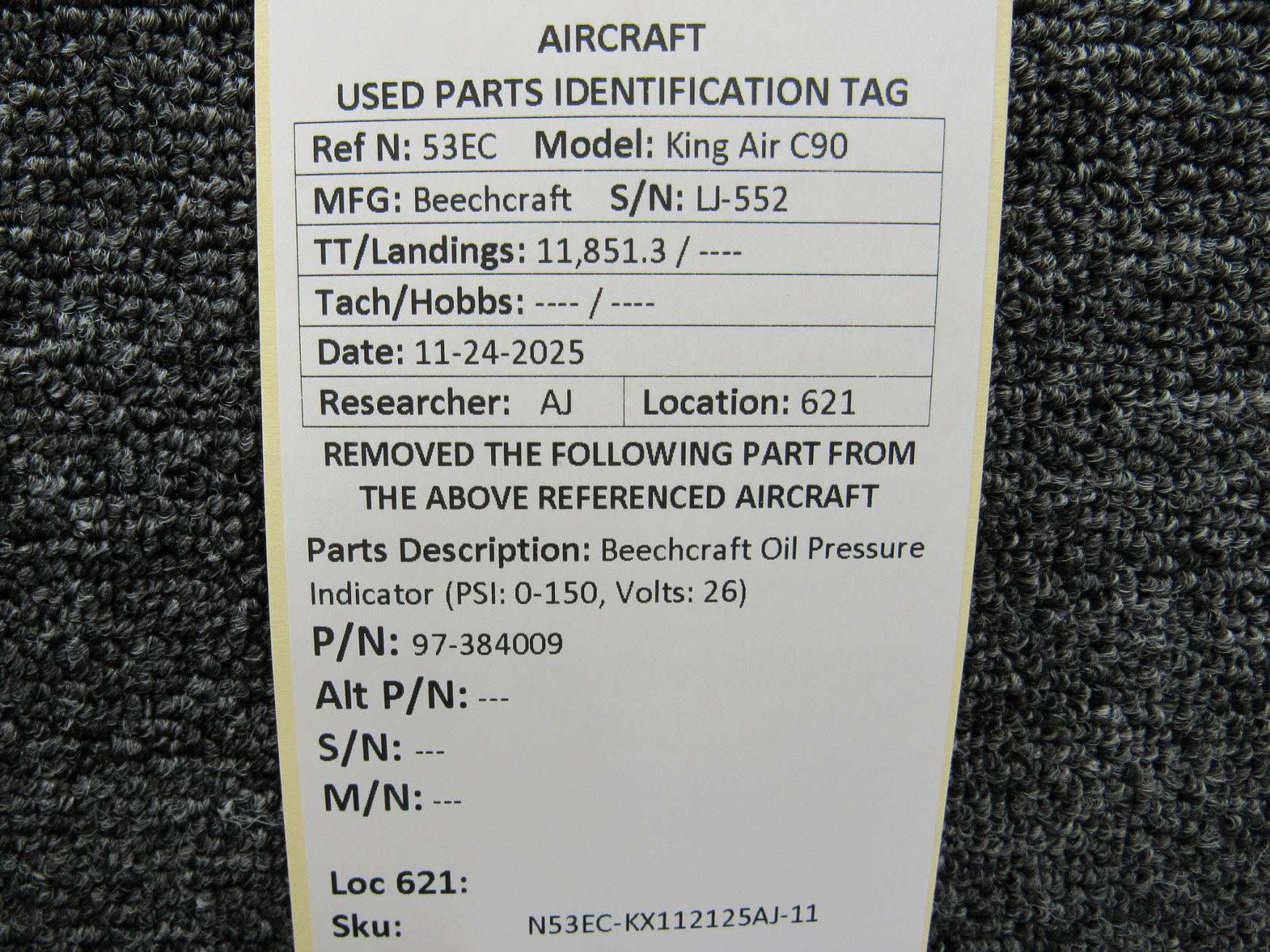 Unless specifically noted, most of our used airplane parts are sold in the condition they were removed, which means you should expect the usual signs of wear and tear.