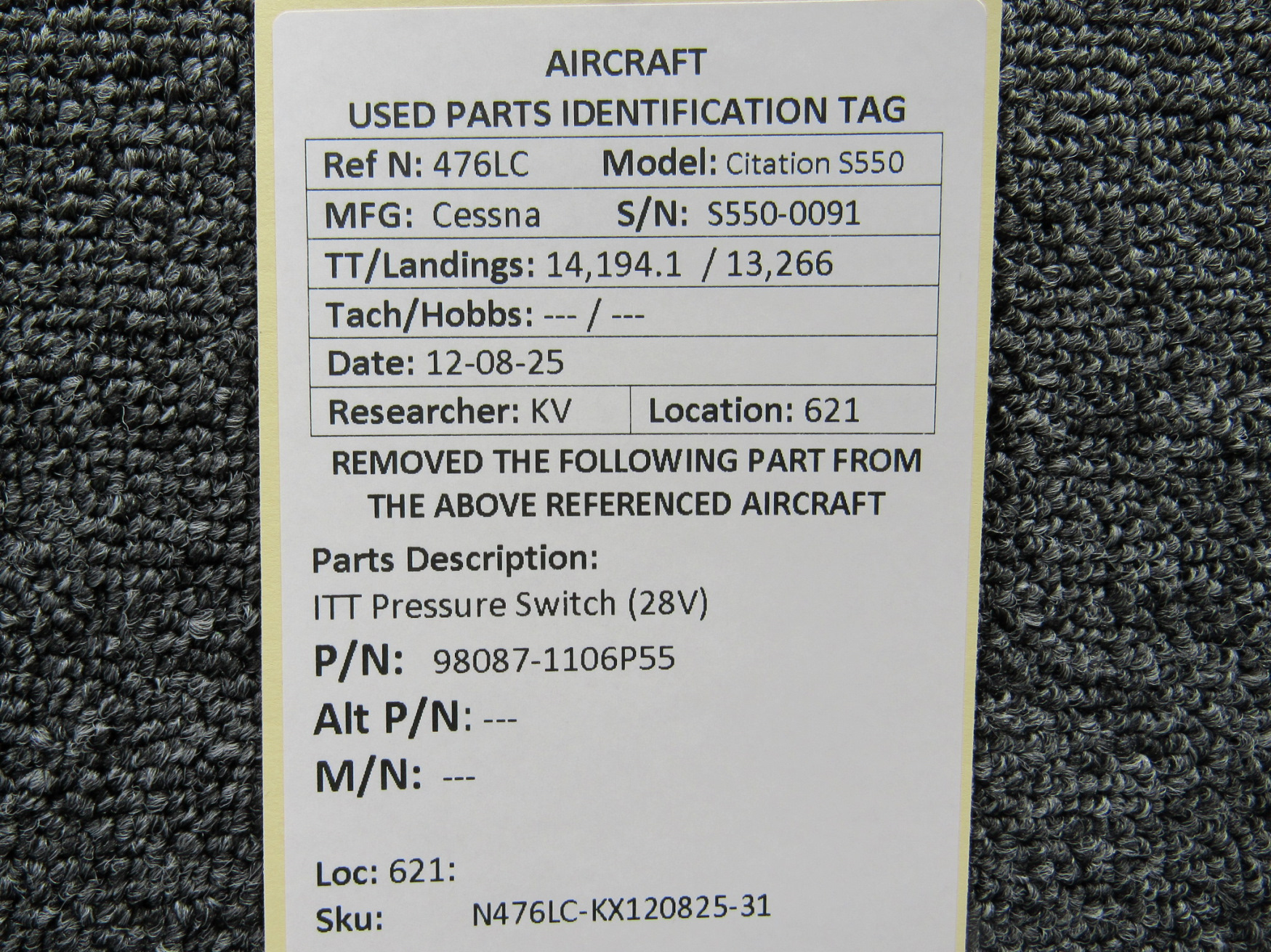 Every part is carefully inspected throughout our process and several times before it goes online. Most items are sold as-removed, just as they came off the aircraft. These parts are not functionally tested. What we do provide is clear photos, full traceability when available, pricing that reflects the as-removed condition, and a no-nonsense 90-day return window.