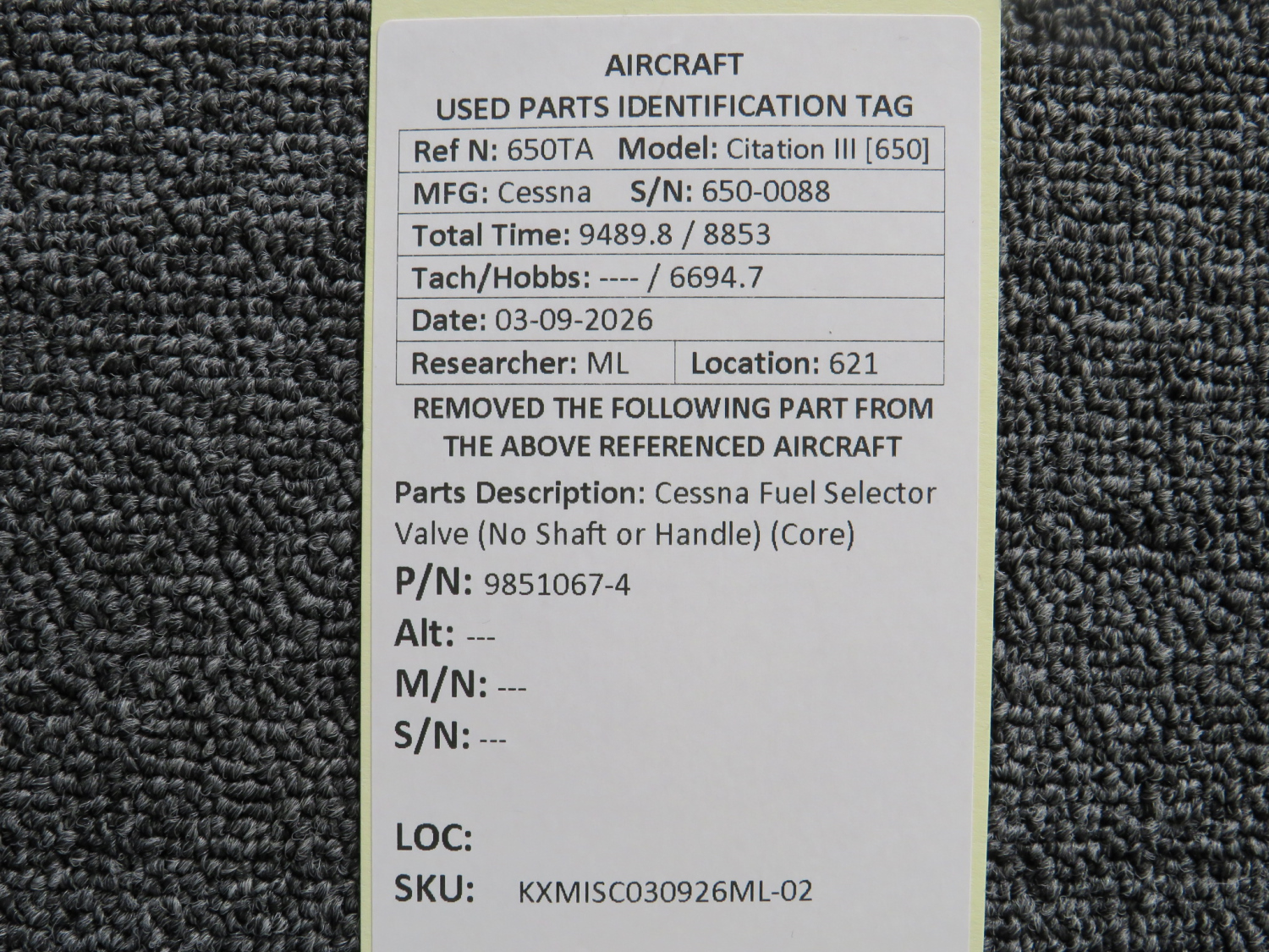 Every part is carefully inspected throughout our process and several times before it goes online. Most items are sold as-removed, just as they came off the aircraft. These parts are not functionally tested. What we do provide is clear photos, full traceability when available, pricing that reflects the as-removed condition, and a no-nonsense 90-day return window.
