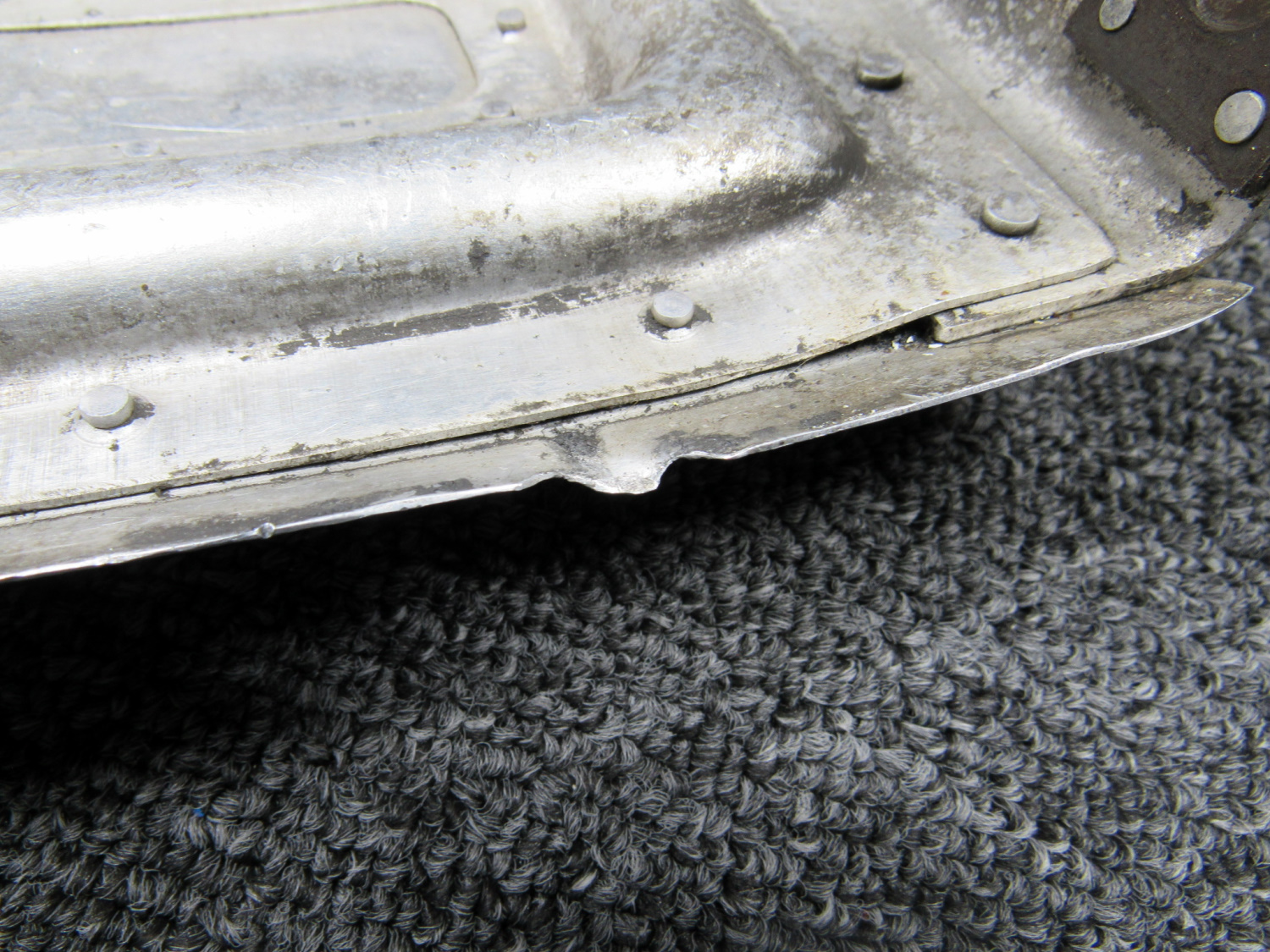 - Warped and chipped edge, Minor oxidization on inside