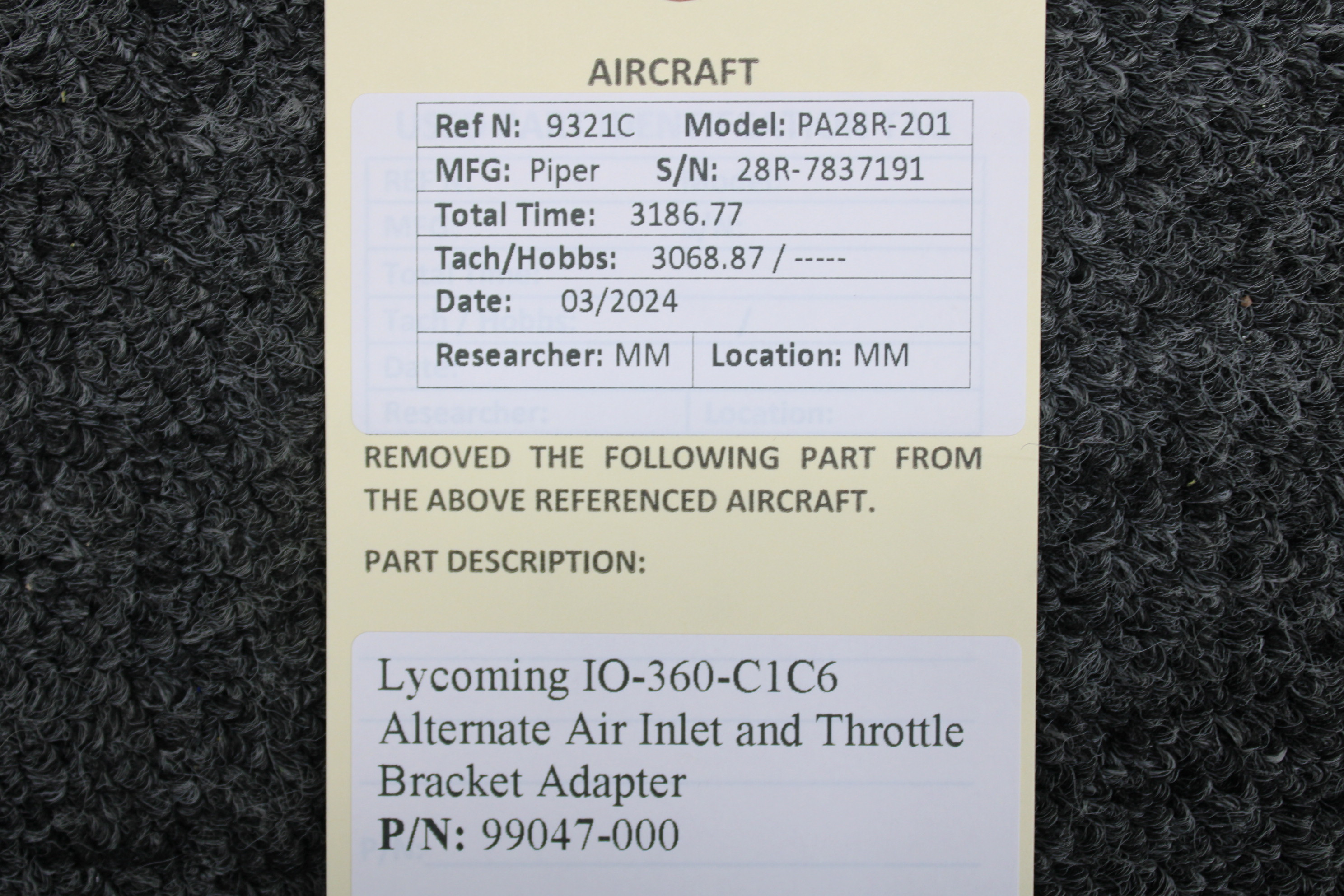 - Removed From: Lycoming IO-360-C1C6