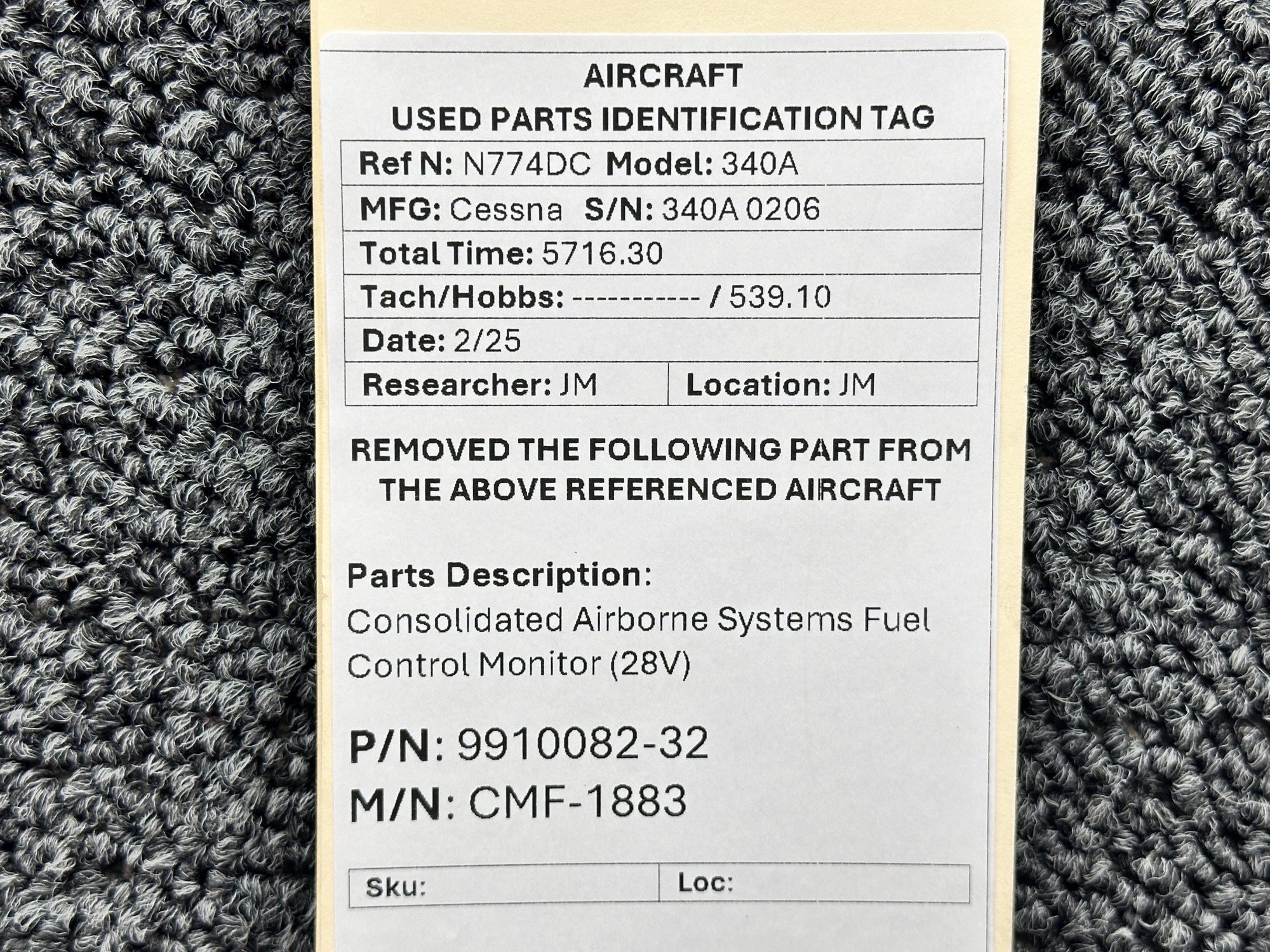 Unless specifically noted, most of our used airplane parts are sold in the condition they were removed, which means you should expect the usual signs of wear and tear.