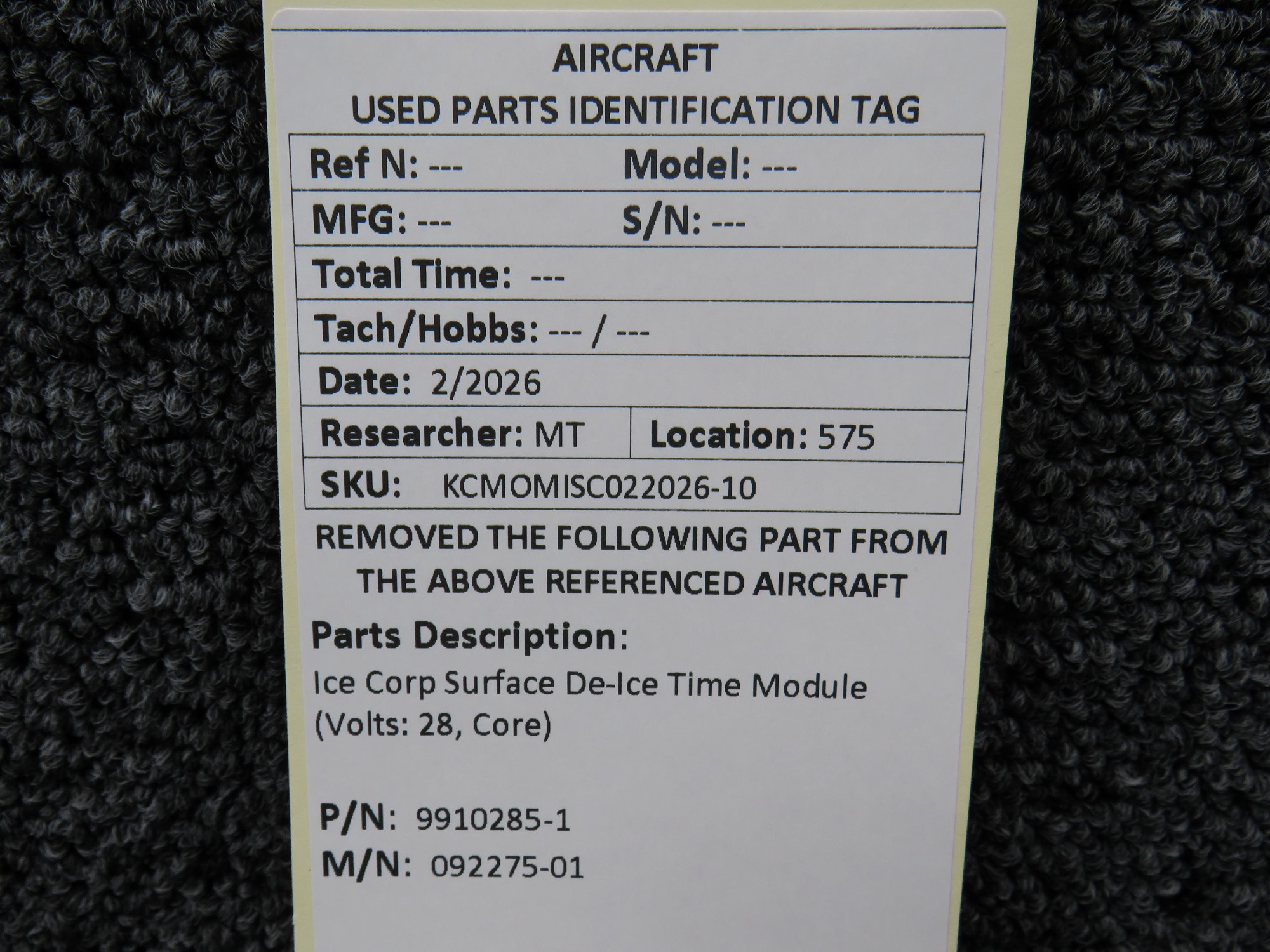 Every part is carefully inspected throughout our process and several times before it goes online. Most items are sold as-removed, just as they came off the aircraft. These parts are not functionally tested. What we do provide is clear photos, full traceability when available, pricing that reflects the as-removed condition, and a no-nonsense 90-day return window.