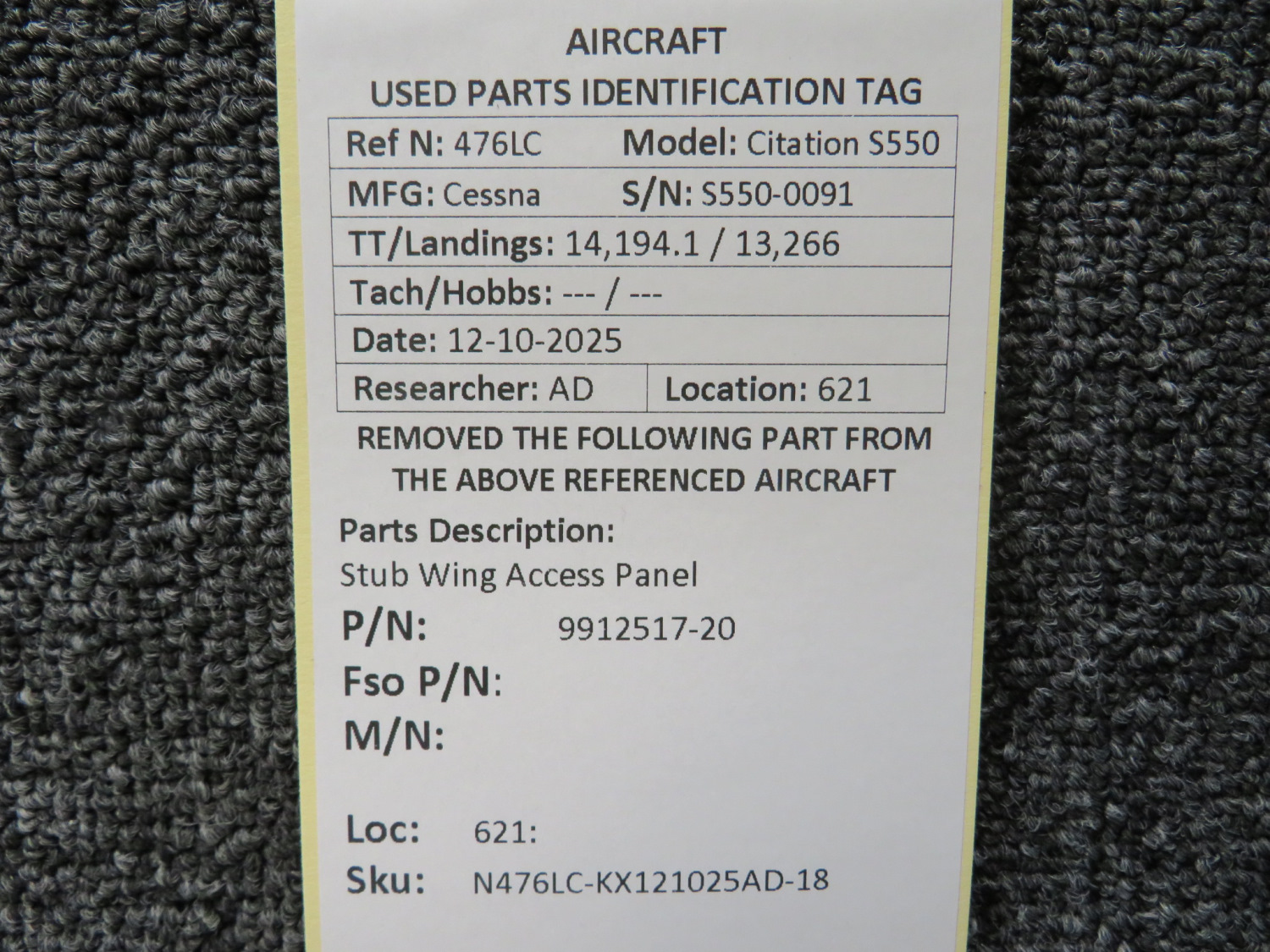 Unless specifically noted, most of our used airplane parts are sold in the condition they were removed, which means you should expect the usual signs of wear and tear.