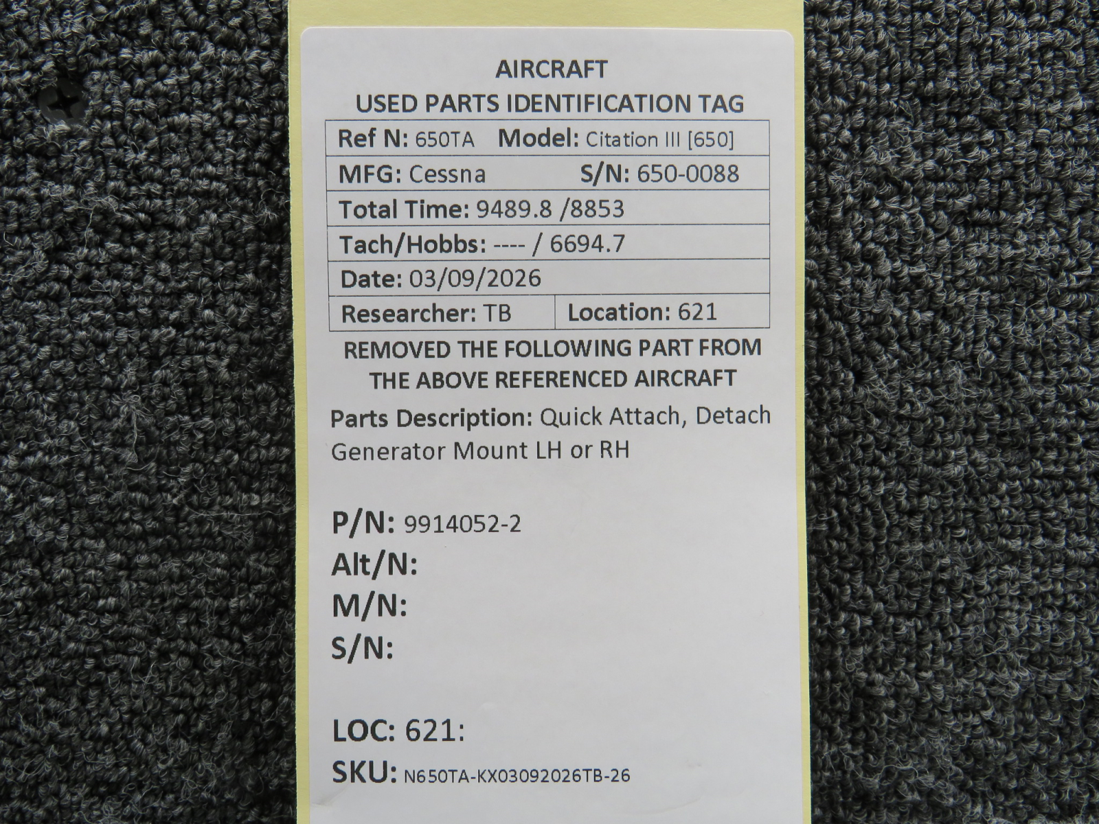 Every part is carefully inspected throughout our process and several times before it goes online. Most items are sold as-removed, just as they came off the aircraft. These parts are not functionally tested. What we do provide is clear photos, full traceability when available, pricing that reflects the as-removed condition, and a no-nonsense 90-day return window.