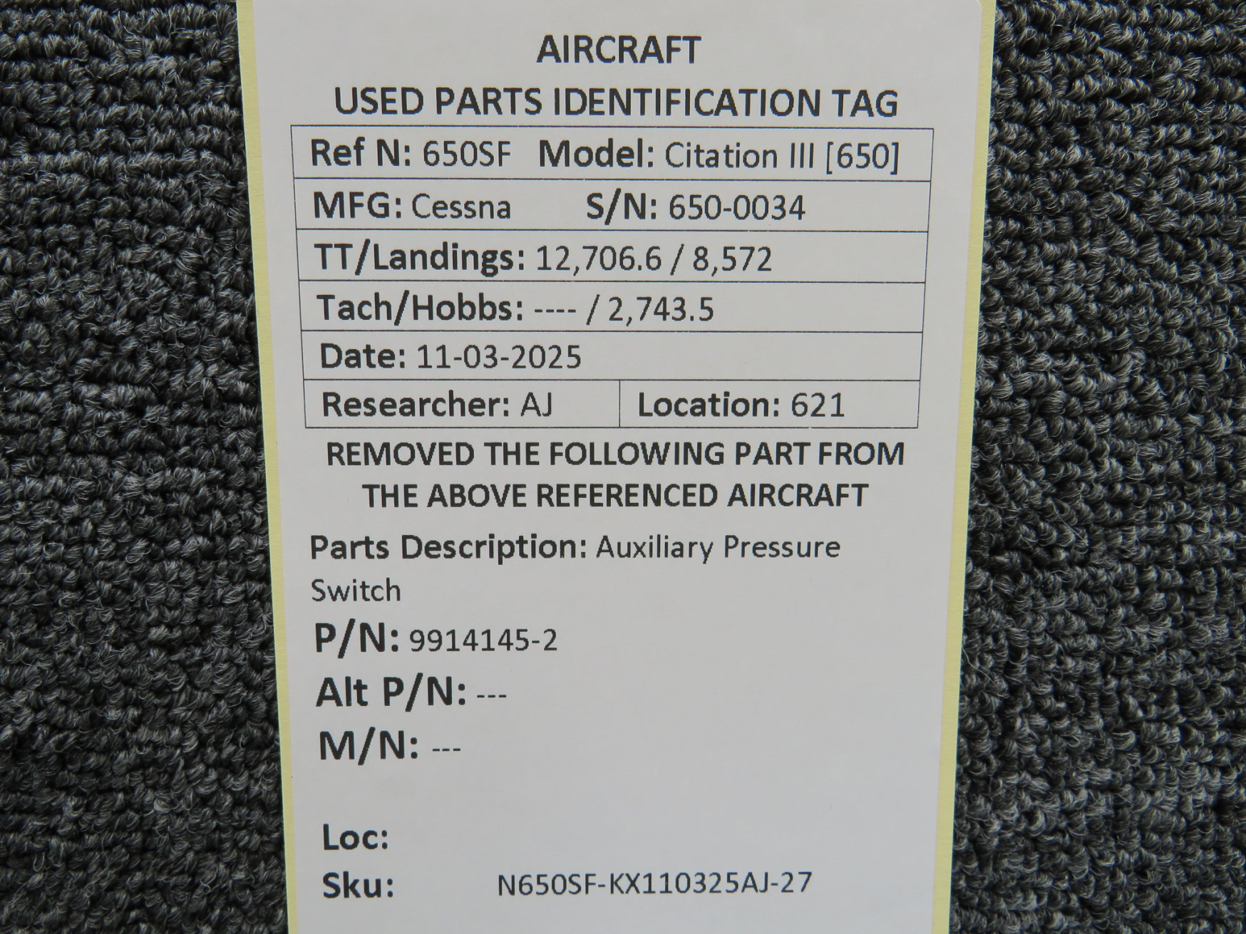 Unless specifically noted, most of our used airplane parts are sold in the condition they were removed, which means you should expect the usual signs of wear and tear.