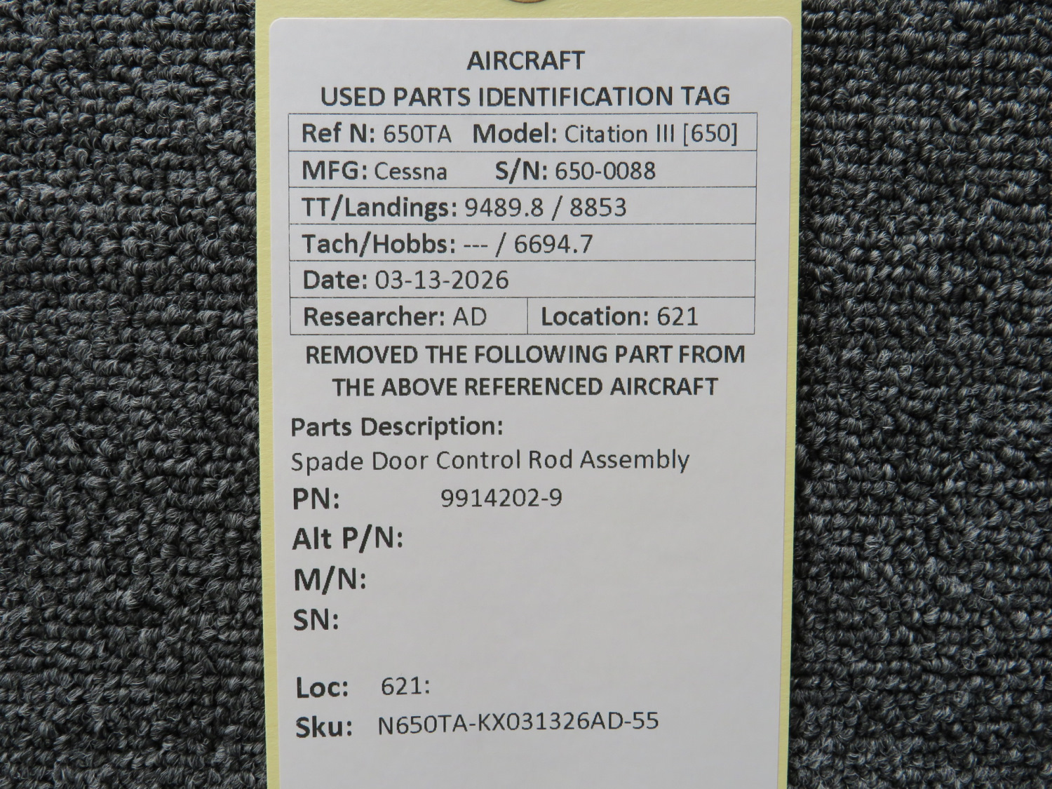 Every part is carefully inspected throughout our process and several times before it goes online. Most items are sold as-removed, just as they came off the aircraft. These parts are not functionally tested. What we do provide is clear photos, full traceability when available, pricing that reflects the as-removed condition, and a no-nonsense 90-day return window.