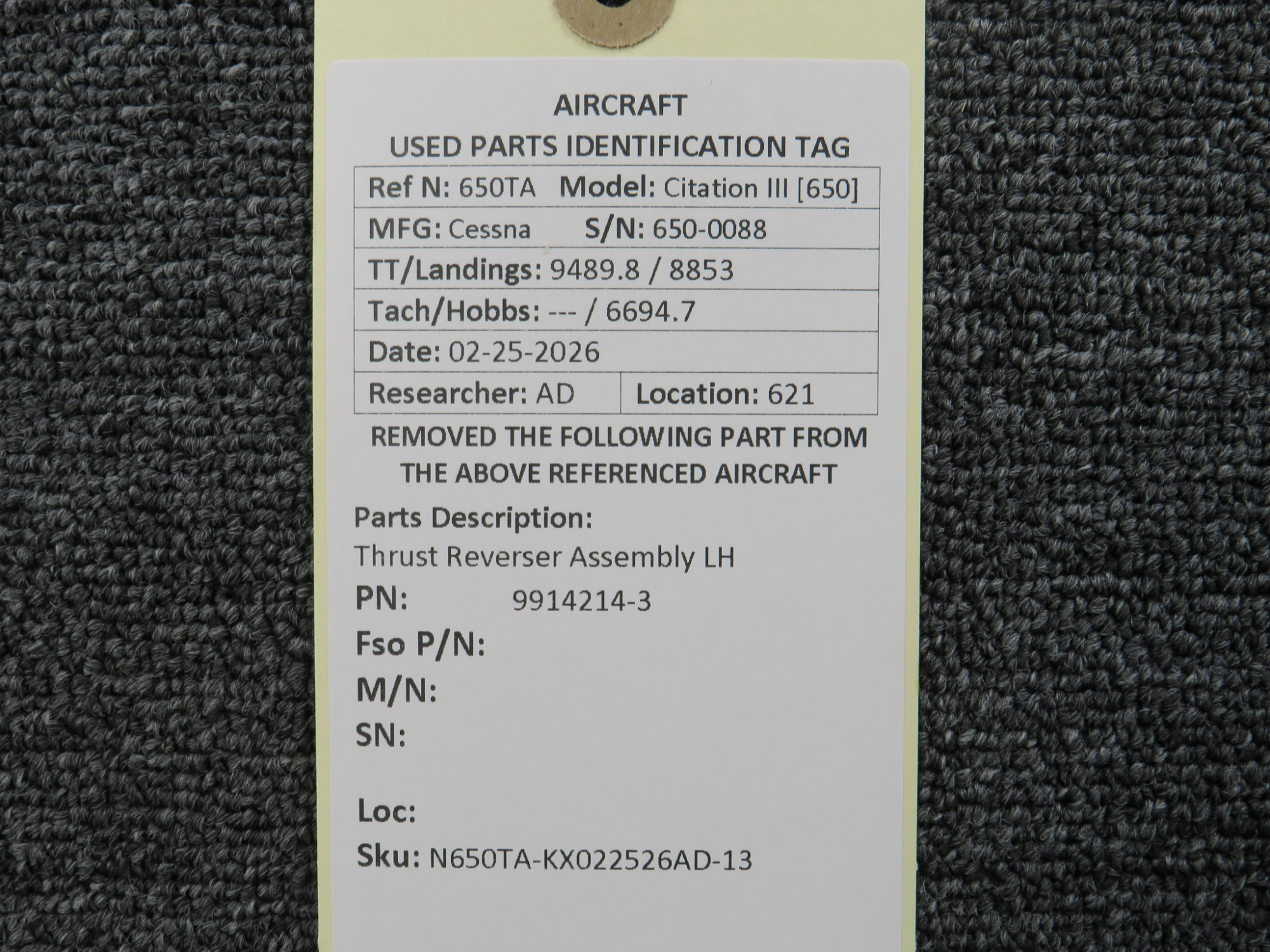 Unless specifically noted, most of our used airplane parts are sold in the condition they were removed, which means you should expect the usual signs of wear and tear.