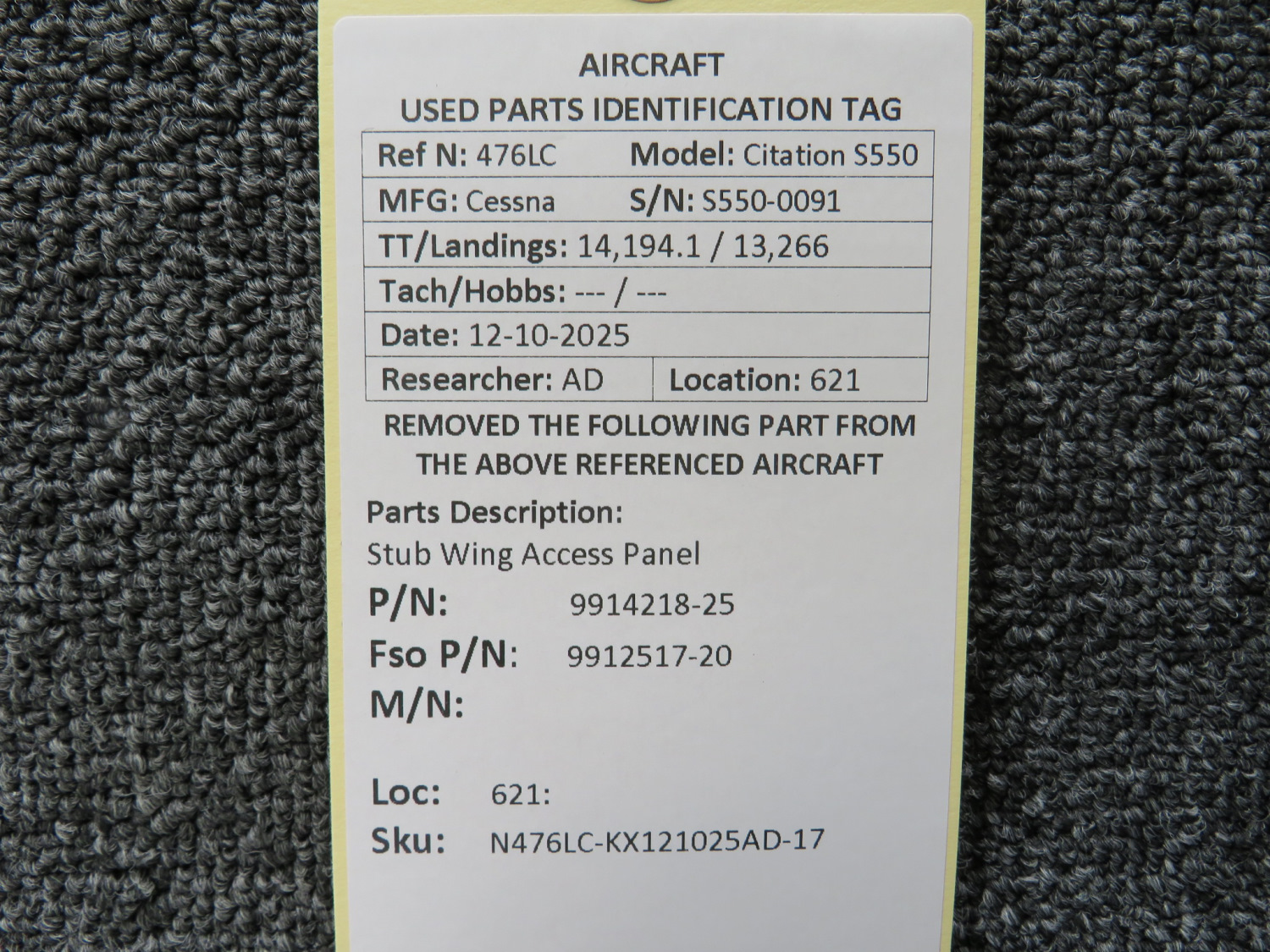 Unless specifically noted, most of our used airplane parts are sold in the condition they were removed, which means you should expect the usual signs of wear and tear.