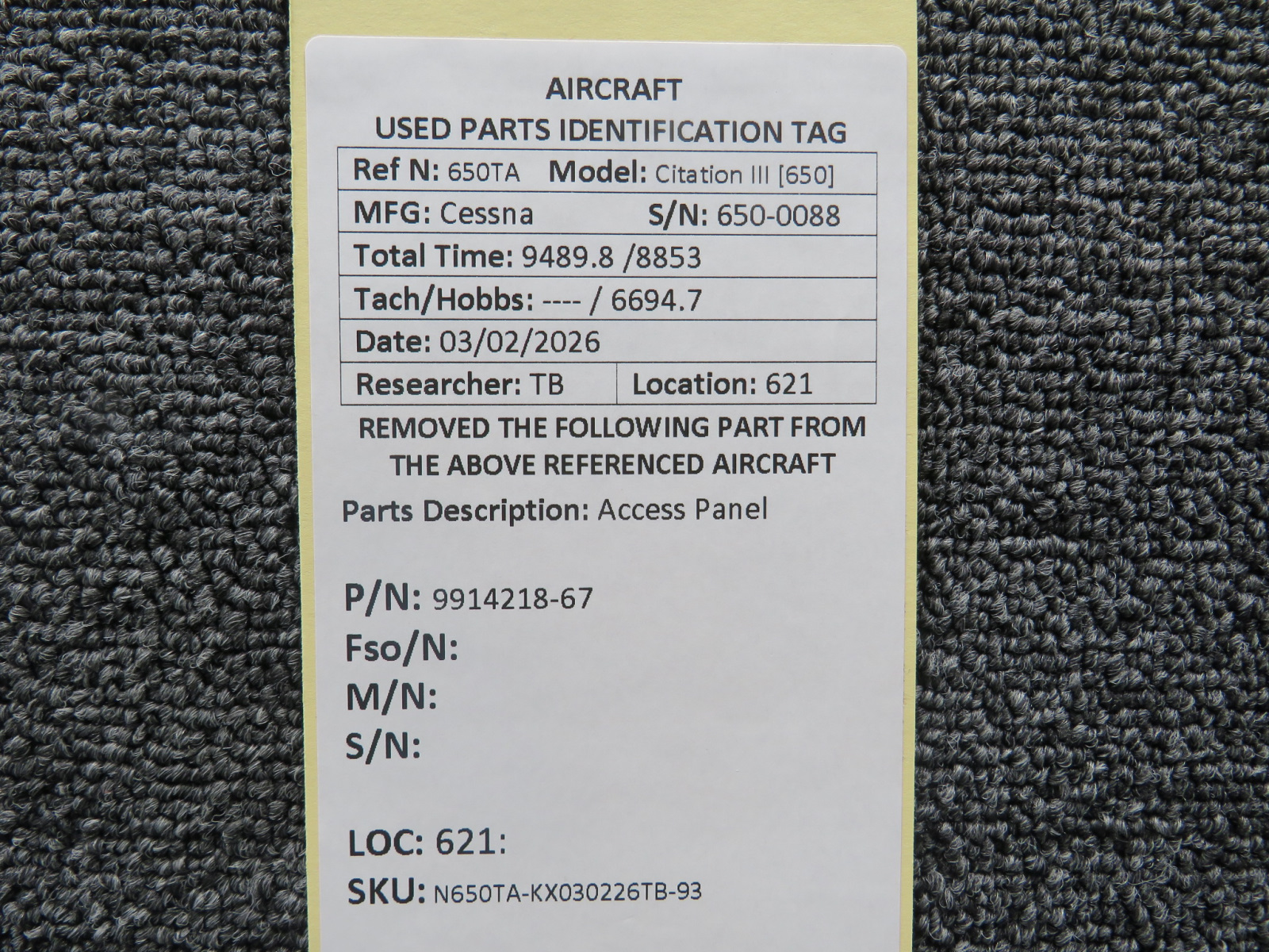 Every part is carefully inspected throughout our process and several times before it goes online. Most items are sold as-removed, just as they came off the aircraft. These parts are not functionally tested. What we do provide is clear photos, full traceability when available, pricing that reflects the as-removed condition, and a no-nonsense 90-day return window.