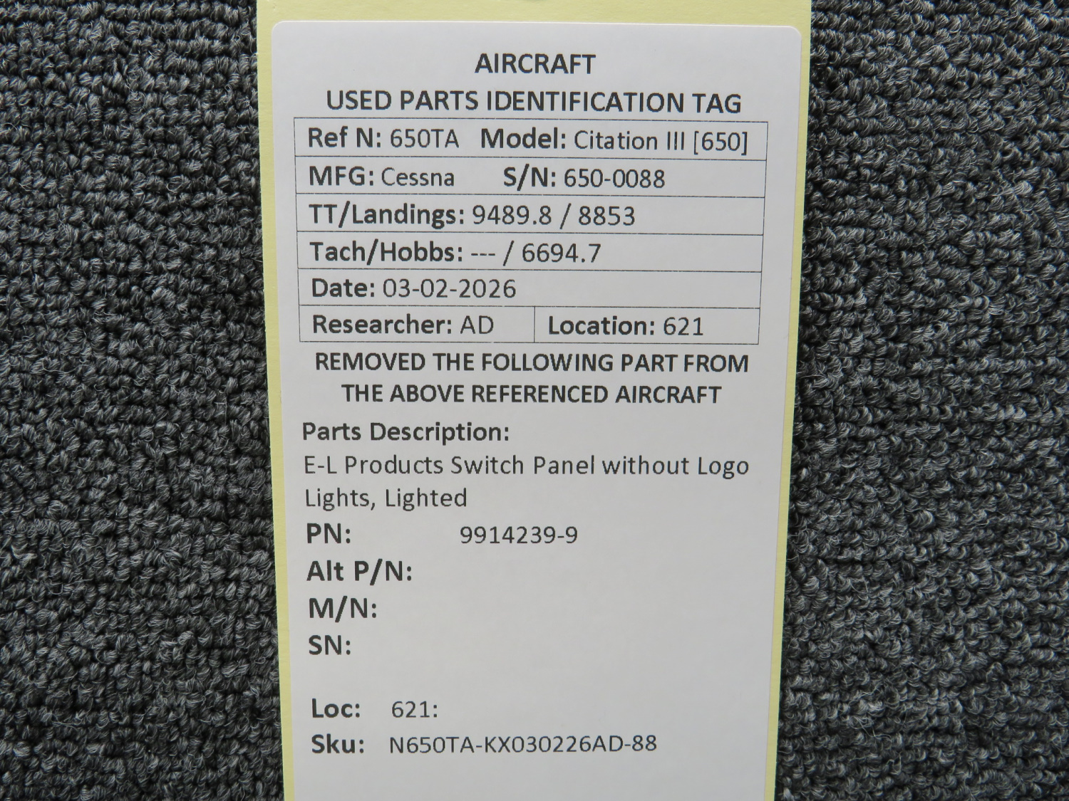 Every part is carefully inspected throughout our process and several times before it goes online. Most items are sold as-removed, just as they came off the aircraft. These parts are not functionally tested. What we do provide is clear photos, full traceability when available, pricing that reflects the as-removed condition, and a no-nonsense 90-day return window.