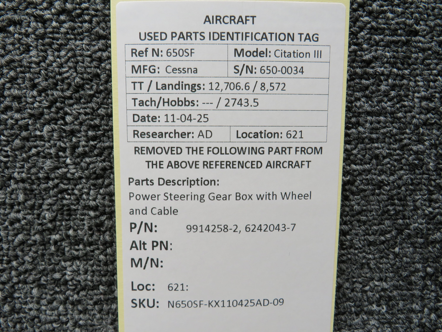 Every part is carefully inspected throughout our process and several times before it goes online. Most items are sold as-removed, just as they came off the aircraft. These parts are not functionally tested. What we do provide is clear photos, full traceability when available, pricing that reflects the as-removed condition, and a no-nonsense 90-day return window.