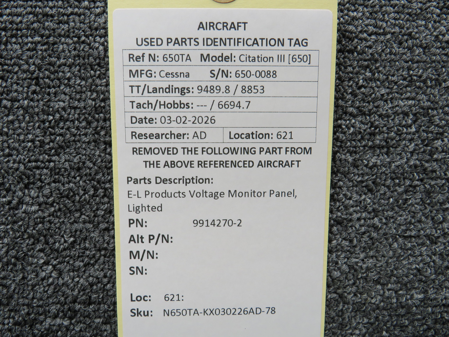 Every part is carefully inspected throughout our process and several times before it goes online. Most items are sold as-removed, just as they came off the aircraft. These parts are not functionally tested. What we do provide is clear photos, full traceability when available, pricing that reflects the as-removed condition, and a no-nonsense 90-day return window.