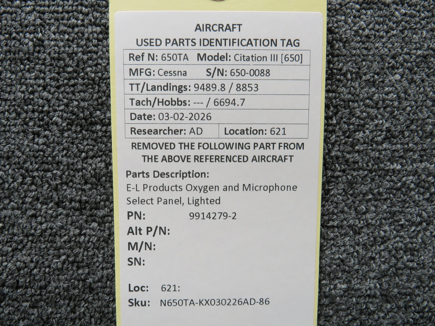 Every part is carefully inspected throughout our process and several times before it goes online. Most items are sold as-removed, just as they came off the aircraft. These parts are not functionally tested. What we do provide is clear photos, full traceability when available, pricing that reflects the as-removed condition, and a no-nonsense 90-day return window.